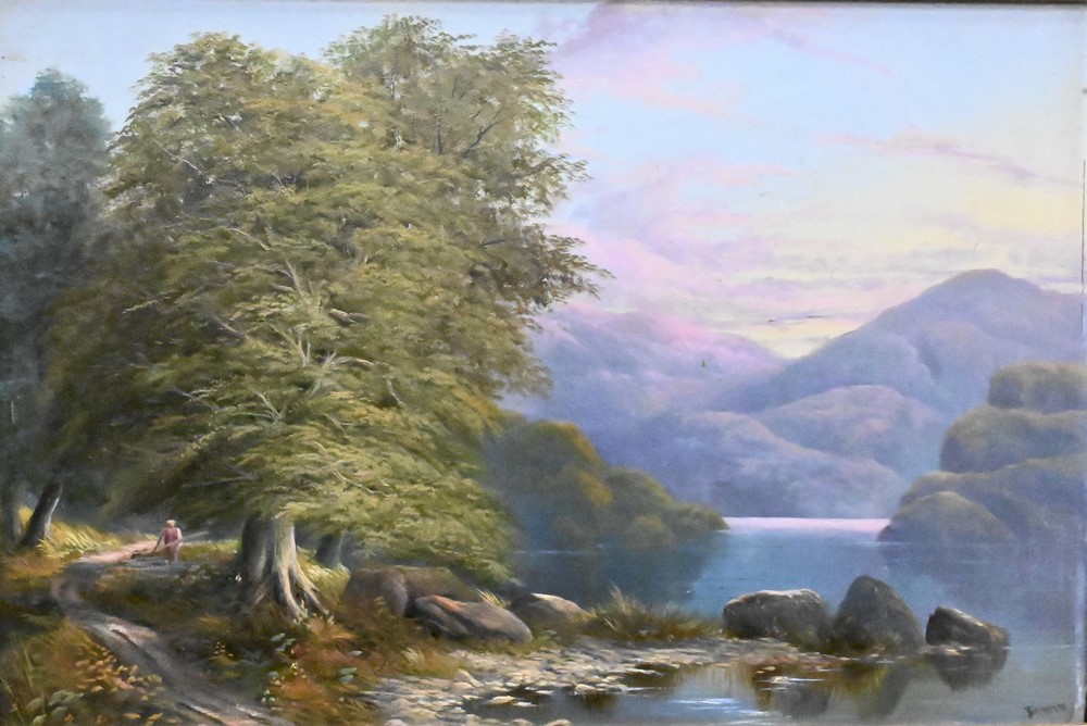 French Seascape, oil on canvas, two ships flying French flags, initialed C.D., in gilt Victorian frame, 12 3/4″ x 18″. Provenance: Estate of Florence Yannios, Waterfront Home, Guilford, CT.