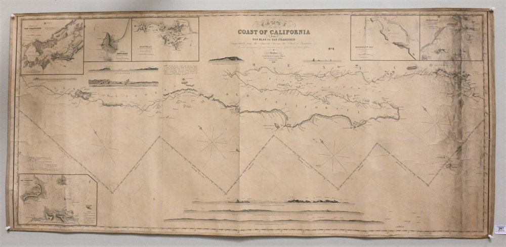 James Imray (1803 – 1870), Chart of the Coast of California from San Blas to San Francisco, engraved blue back map marked James Imray & Son, 1862, 26 1/2″ x 56 3/4″.