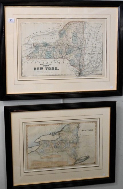 Three Hand Colored Engraved Double Page Maps of New York, one drawn by Lucas, engraved by Welch, to include “Plan of the State of New York”; “New York and Vicinity”; “Asher & Adam’s New York”; along with “Part of Ontario”. Provenance: Originally from Credit Suisse’s Americana Collection to present owner.