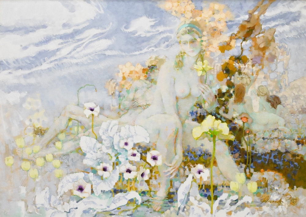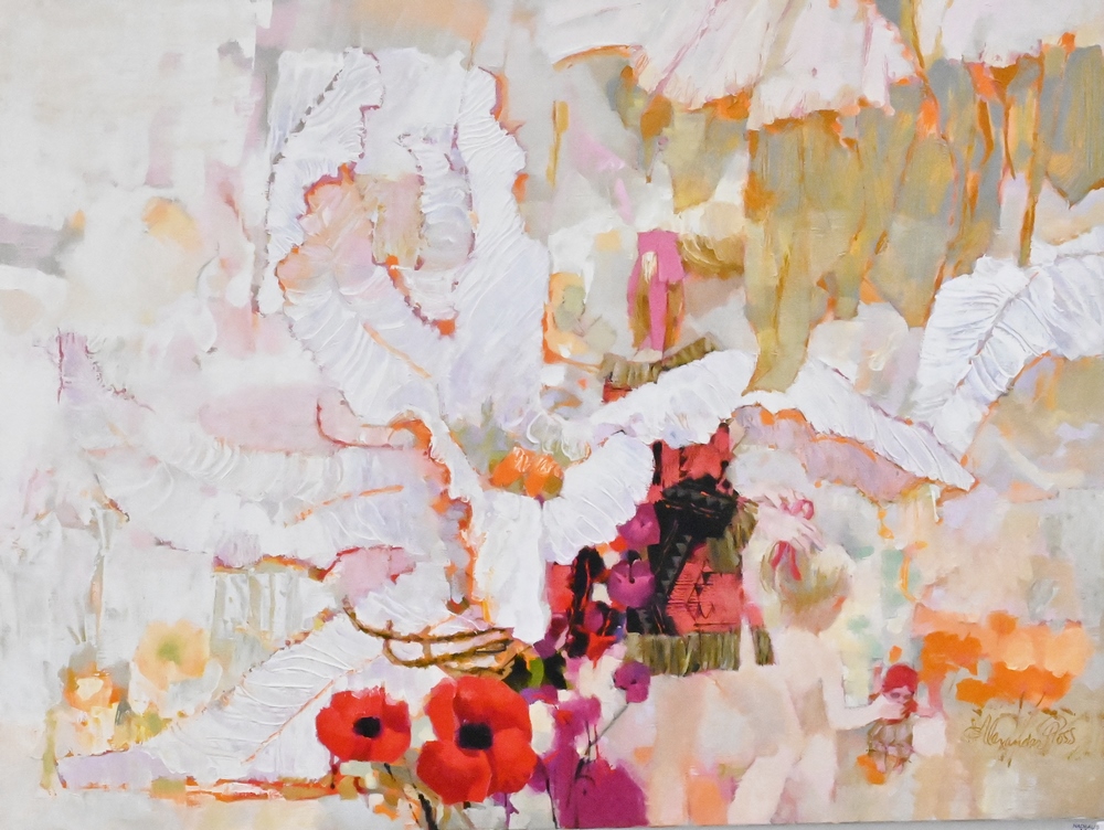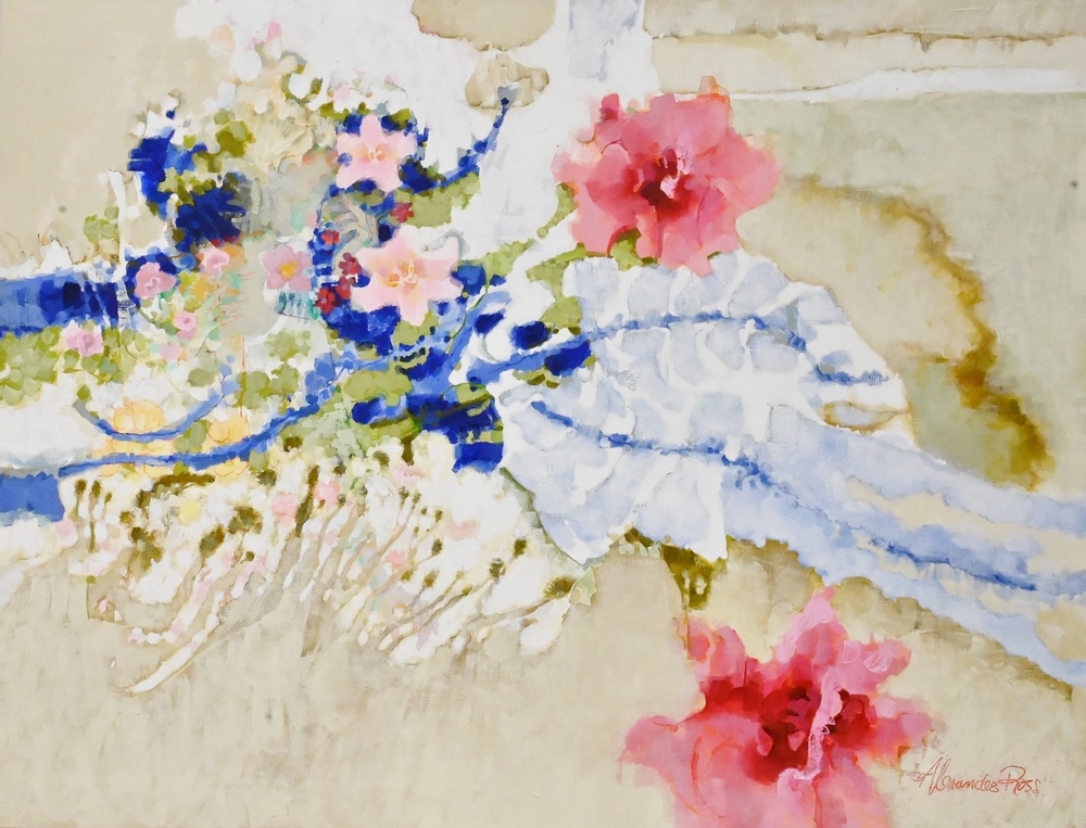 Alexander Ross (Scottish/American, 1908 – 1990), Blossoming Flowers, signed lower right, oil on canvas, 39 1/4″ x 52″. Provenance: An estate from Redding, CT.