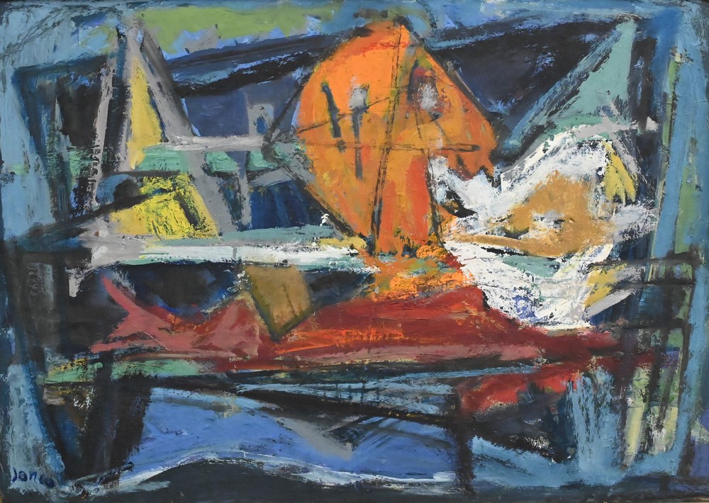 Alexander Ross (Scottish/American, 1908 – 1990), Mother and Child in an Abstract Landscape, oil on canvas, signed lower right, 30″ x 40″. Provenance: An estate from Redding, CT.