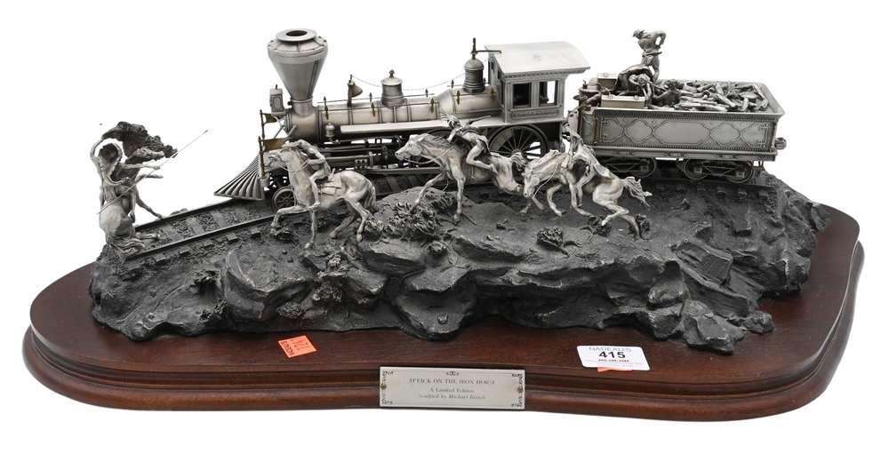 Michael Boyett Pewter Sculpture, Attack on the Iron Horse, limited edition sculpture, height 7 inches, length 25 1/2 inches. Provenance: Collections of Norma Reilly, New Jersey.