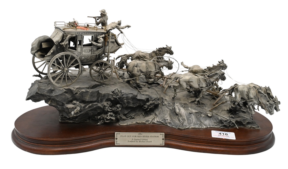 Michael Boyett Pewter Sculpture, Flat Out for Red River Station, limited edition, height 8 inches, width 17 inches. Provenance: Collections of Norma Reilly, New Jersey.