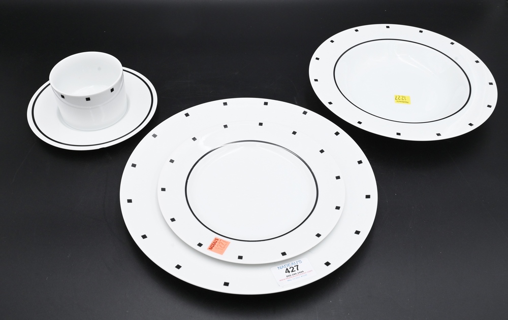 87 Piece Sasaki Set of China Dinnerware, to include 16 dinner plates, 14 salad plates, 16 soup bowls, 16 tea saucers, 16 tea cups, along with 9 serving pieces.