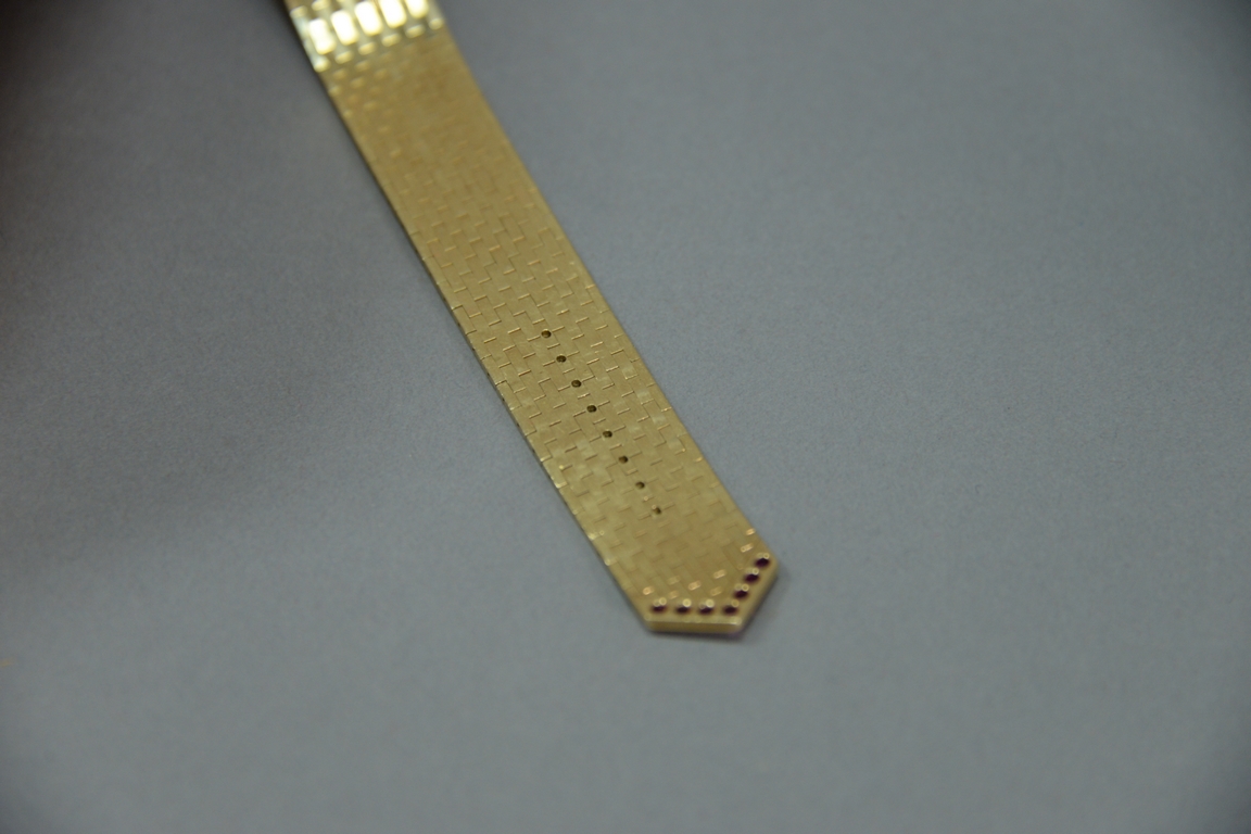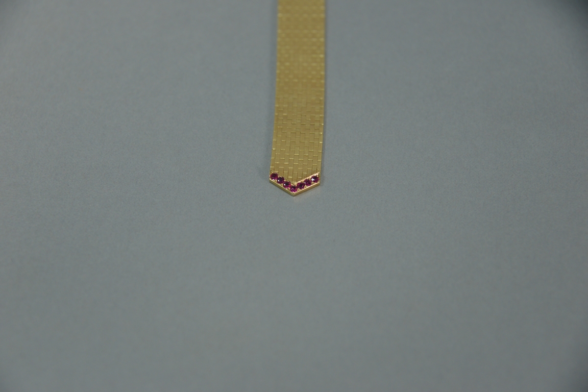Lot 1: 14K mesh bracelet buckle style set with 29 rubies and three diamonds, mid 20th century. 42.7 grams. lg. 7 3/4in.