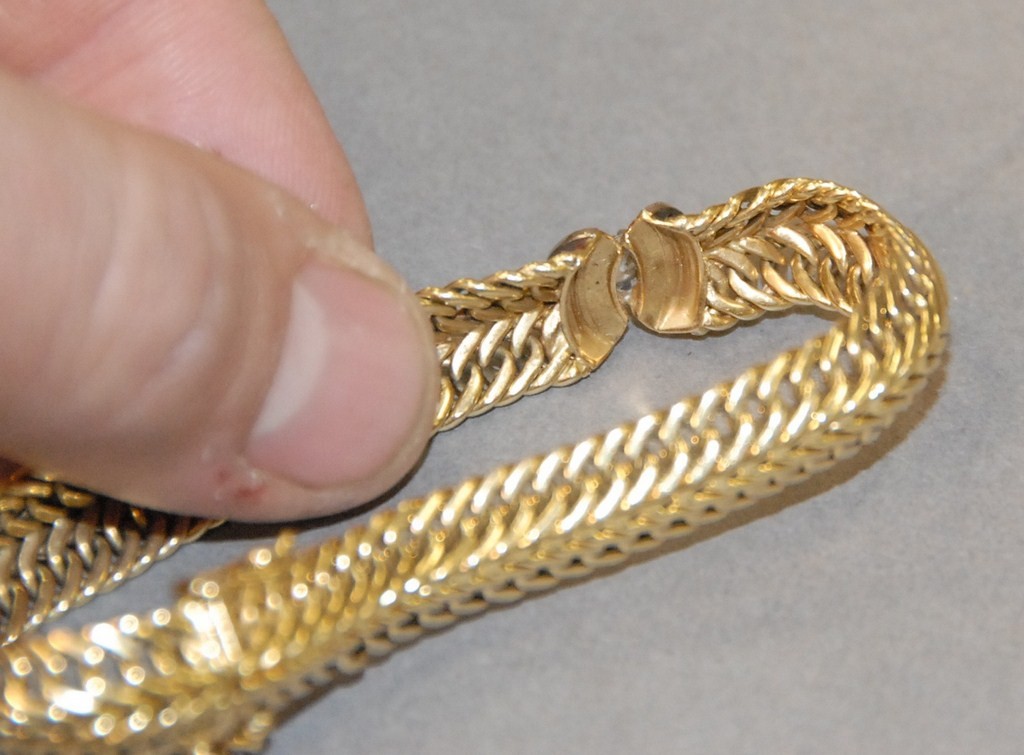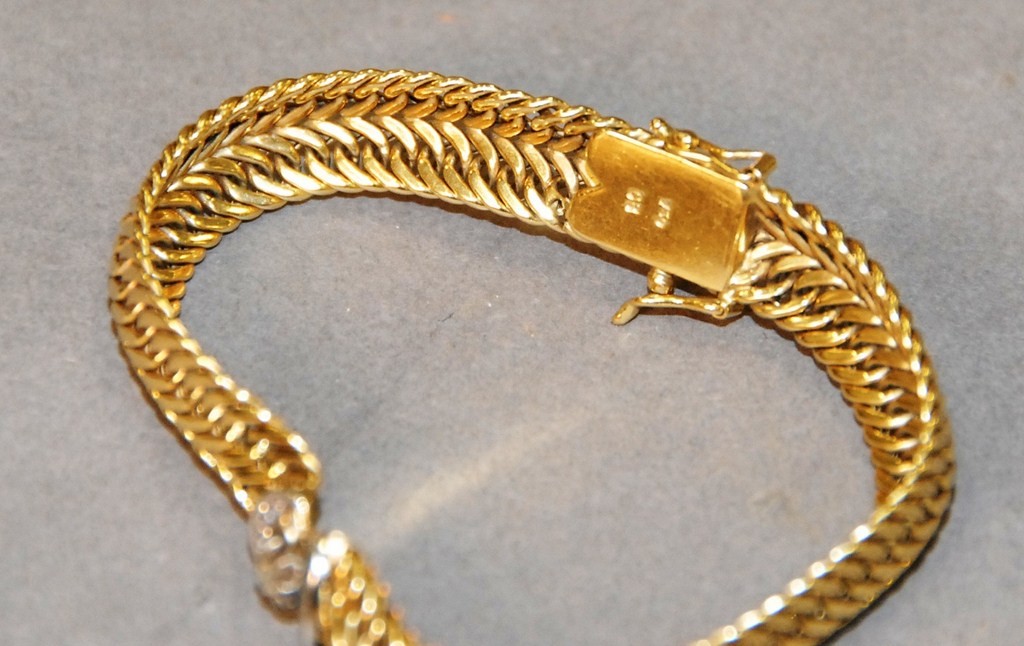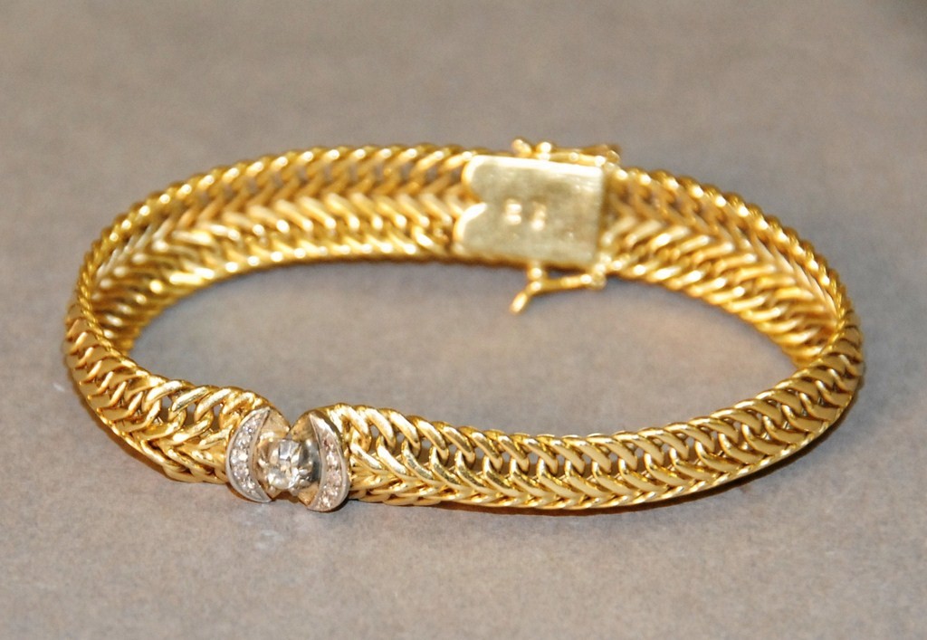 Lot 1: 18kt gold mesh bracelet mounted with small