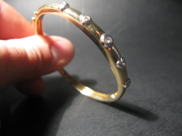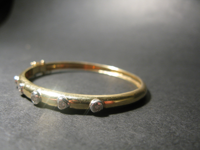 Diamond bangle bracelet with five round brilliant cut diamonds, 2.8 mm – 2.3 mm, with an appraisal.