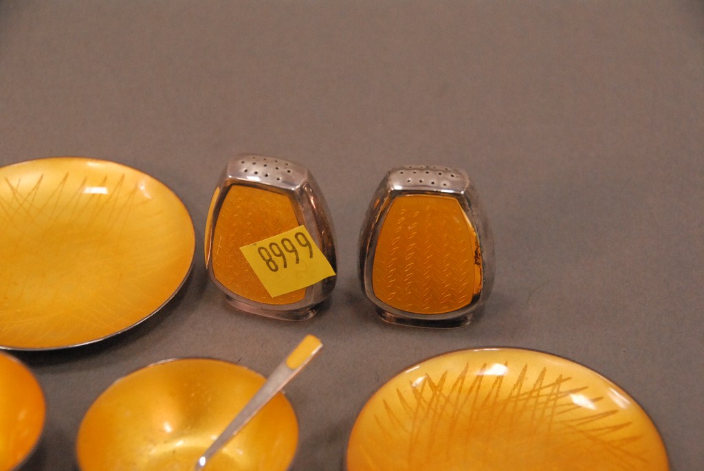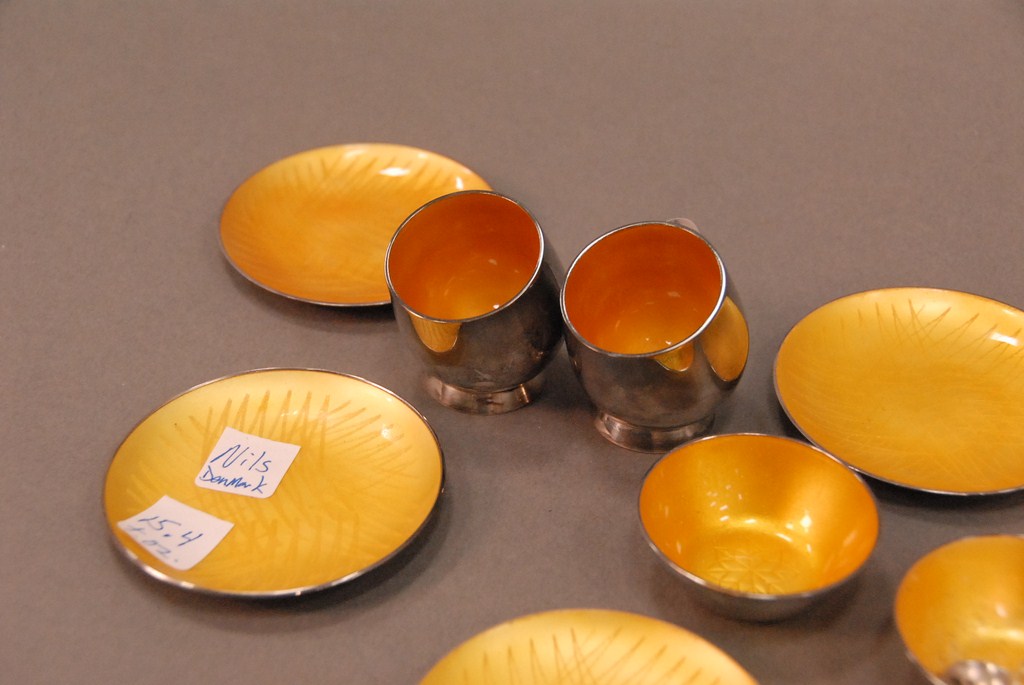 Lot 1: Group of enameled sterling silver signed Nils Denmark, 13 pieces, 15.4 t oz.