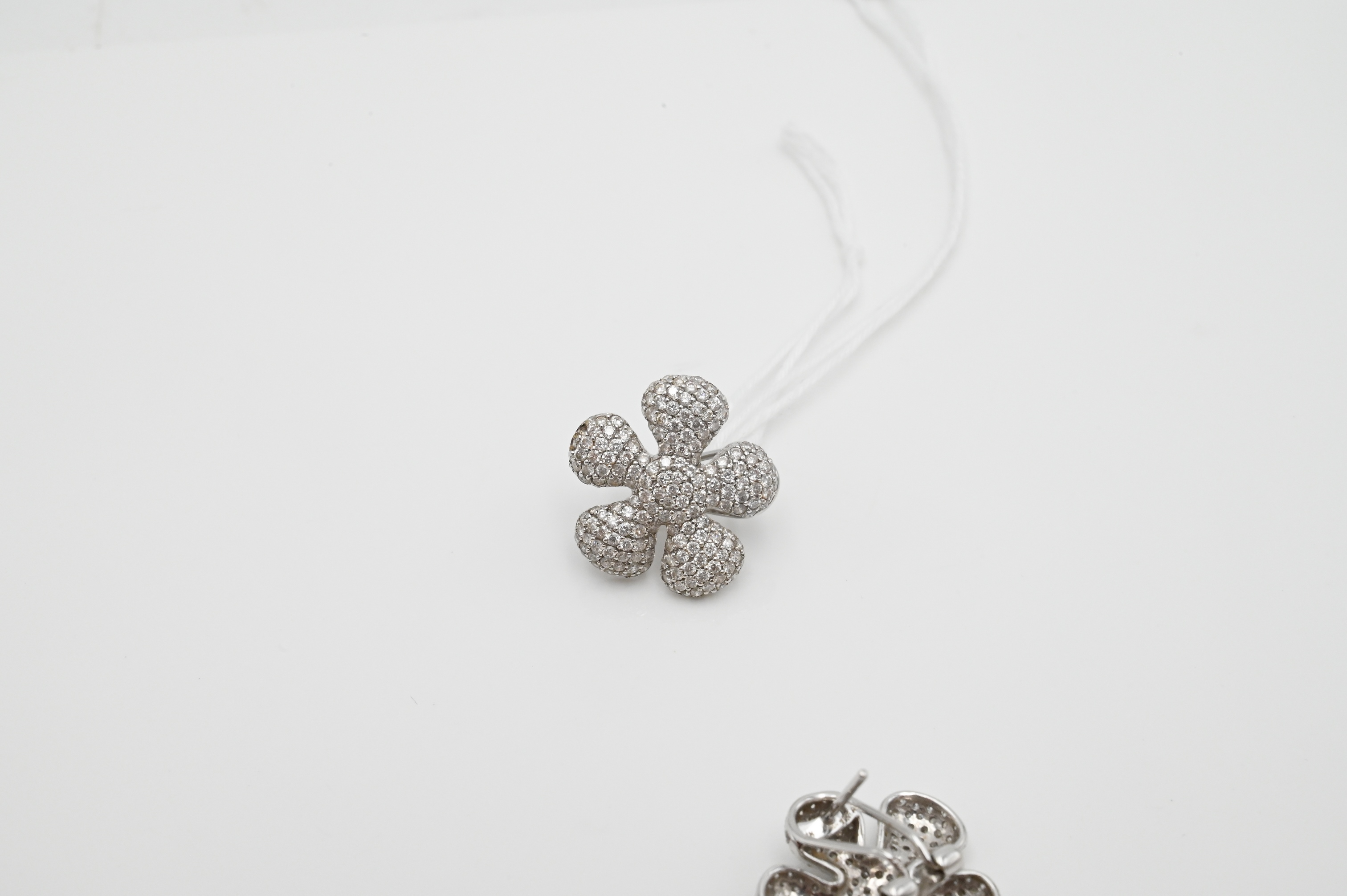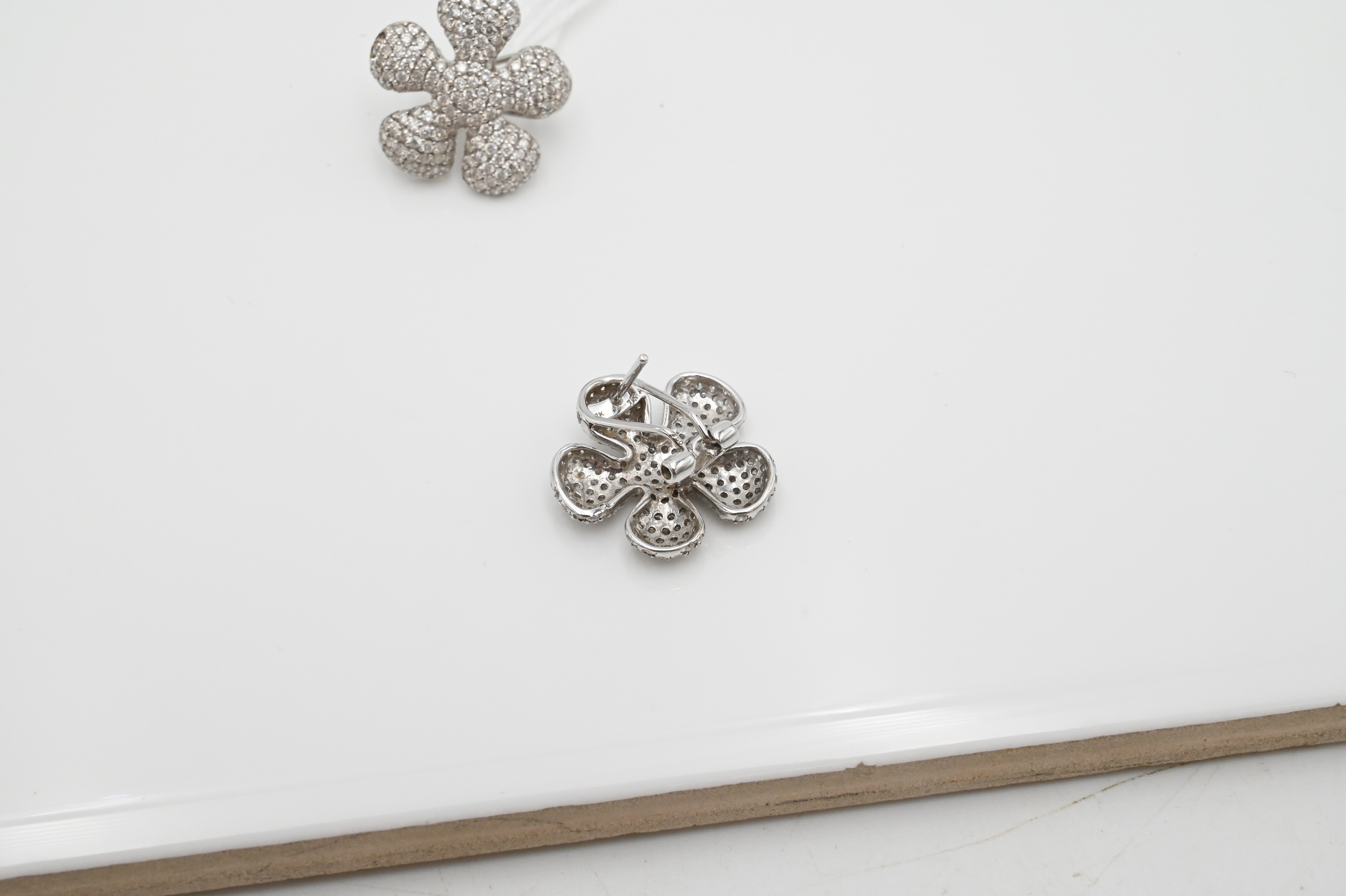 Pair of 18 Karat White Gold Earrings, set with diamonds in five leaf clover style, 6.4 grams.