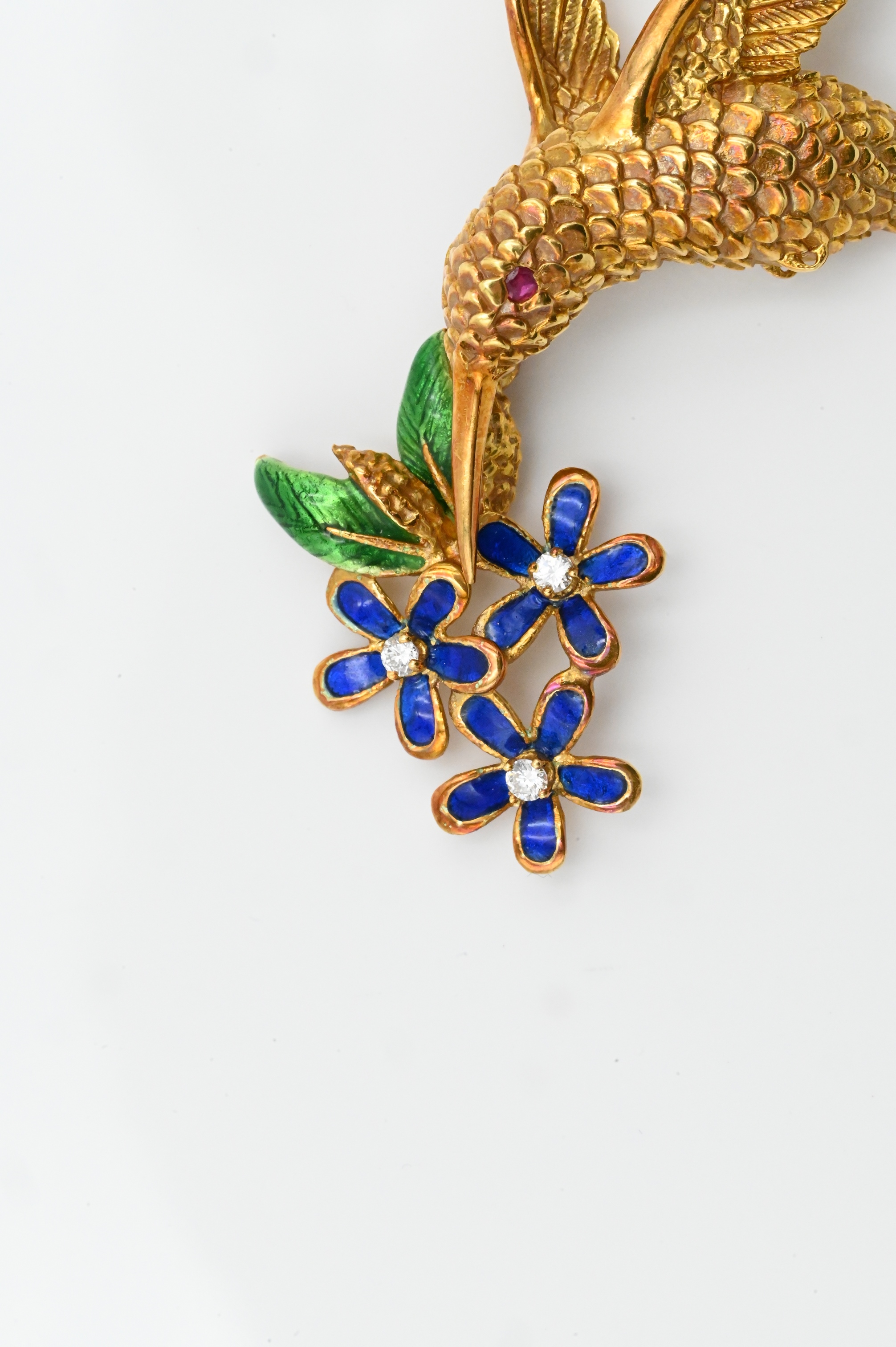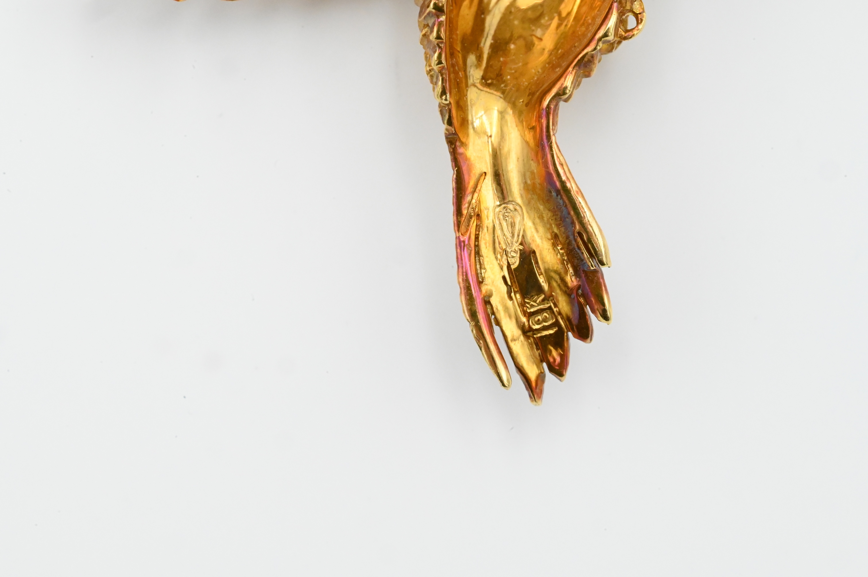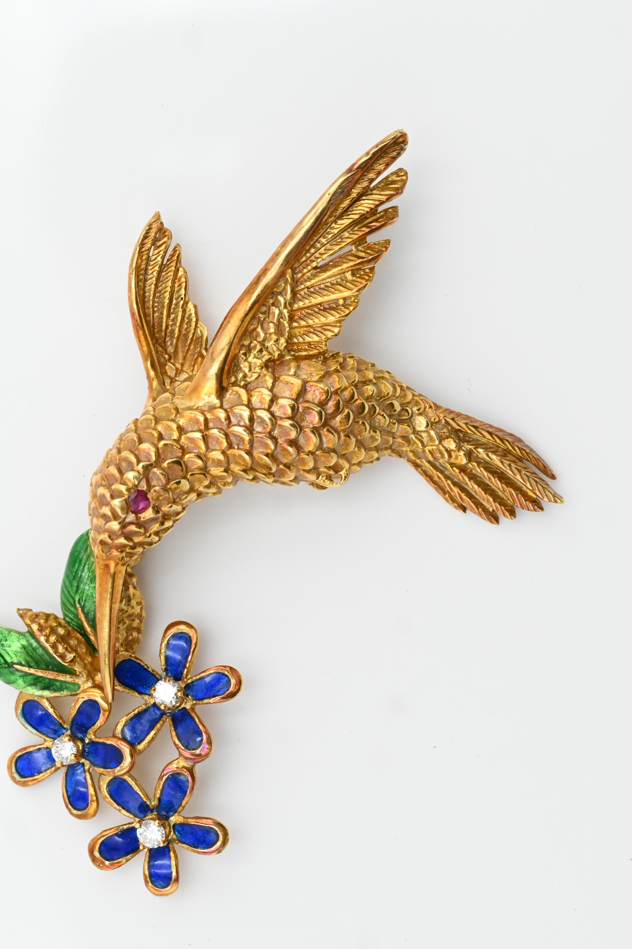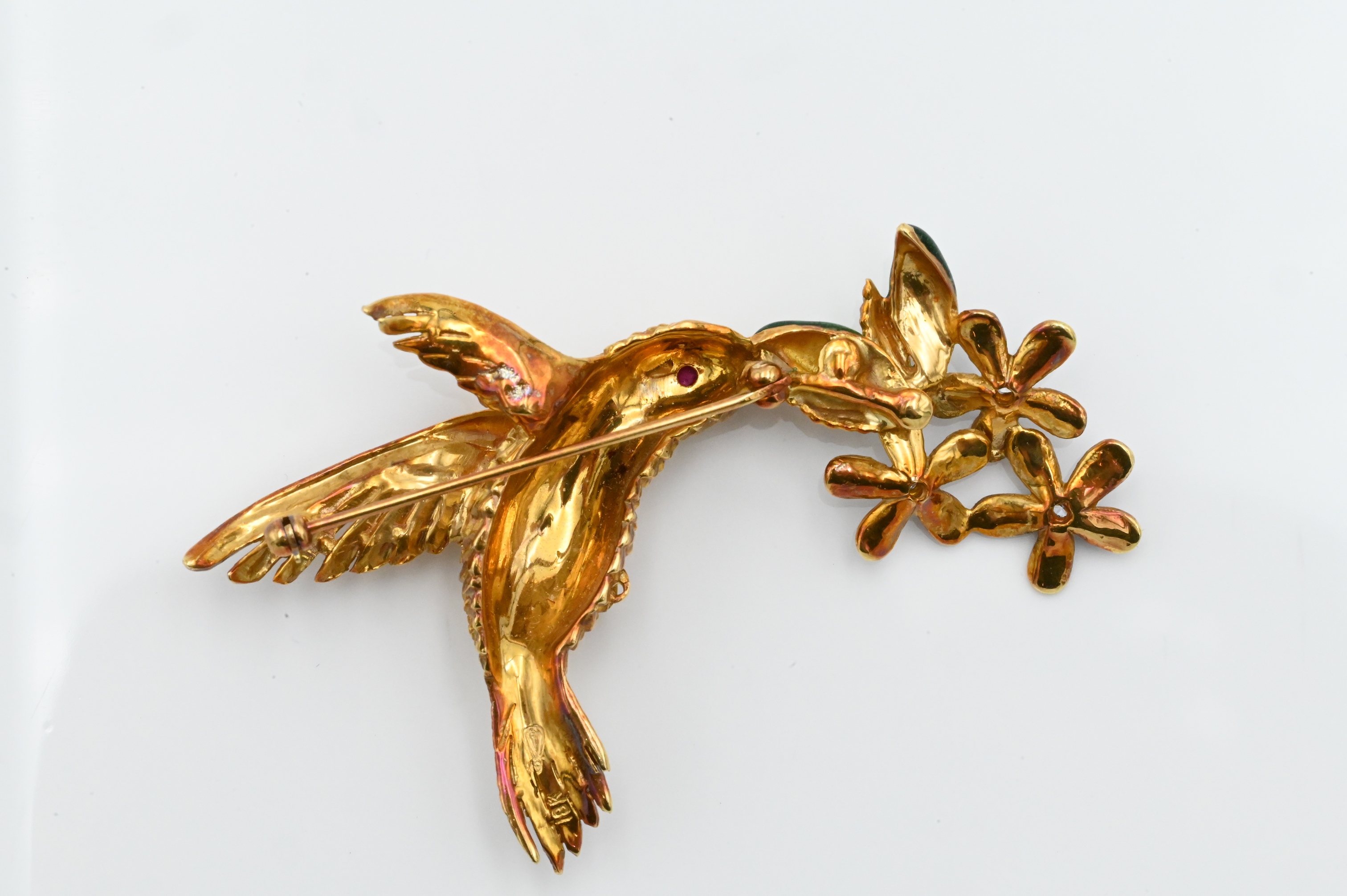 Lot 1: Peter Lindeman 18K Yellow Gold Hummingbird Brooch