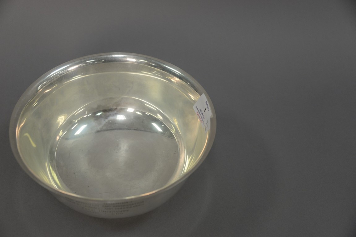 Sterling silver Fisher Paul Revere style award bowl. ht. 4 1/2 in. dia. 9 1/4 in. 17.9 t oz.