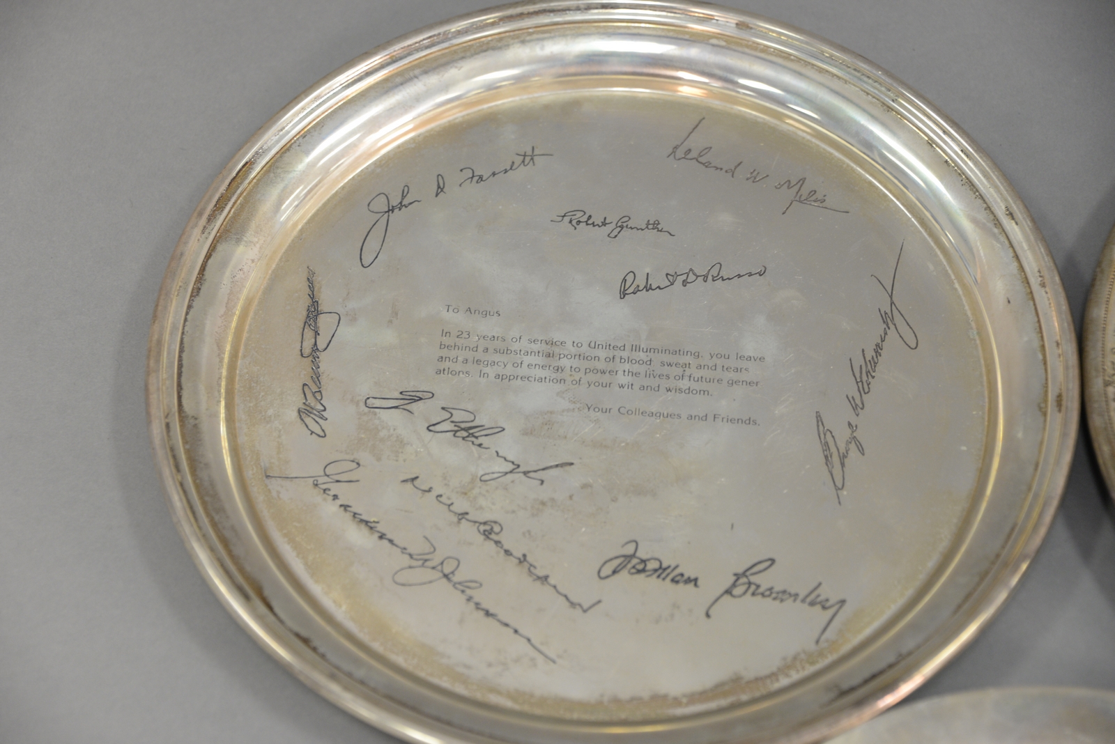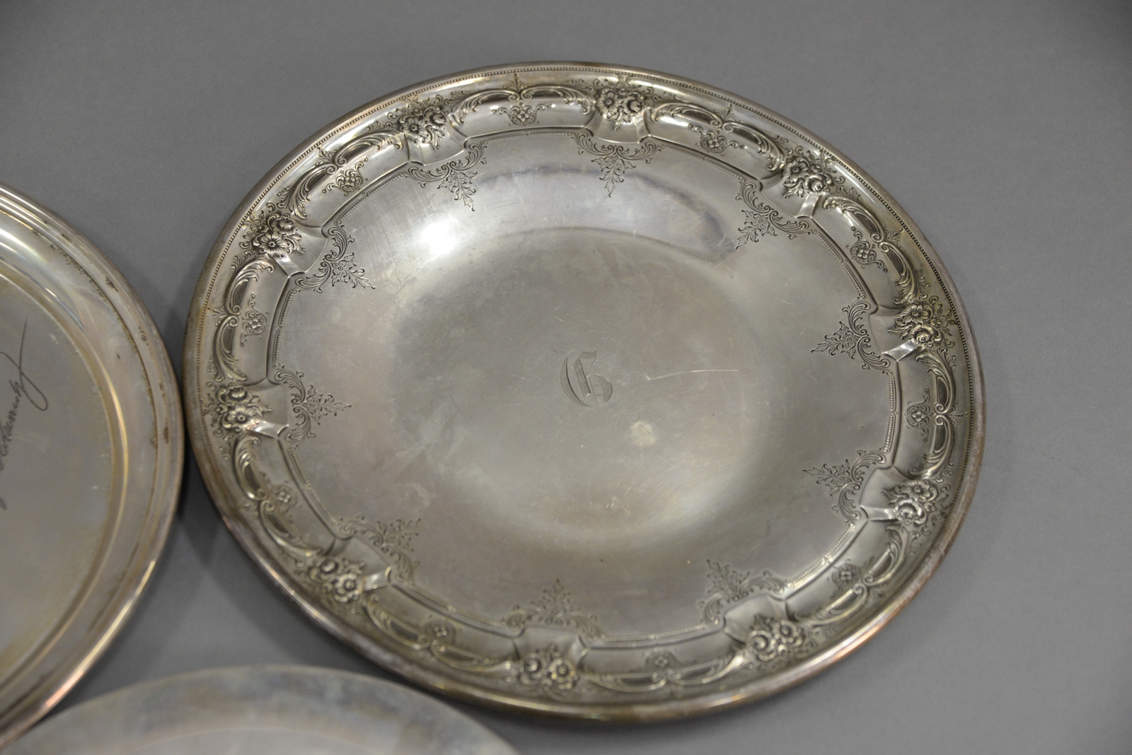 Three sterling silver plates. 9-10 1/2 in., 30.6 t oz.