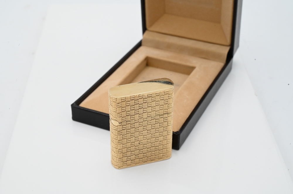 14 Karat Gold Cigarette Lighter, net weight of case only 27.2 grams.