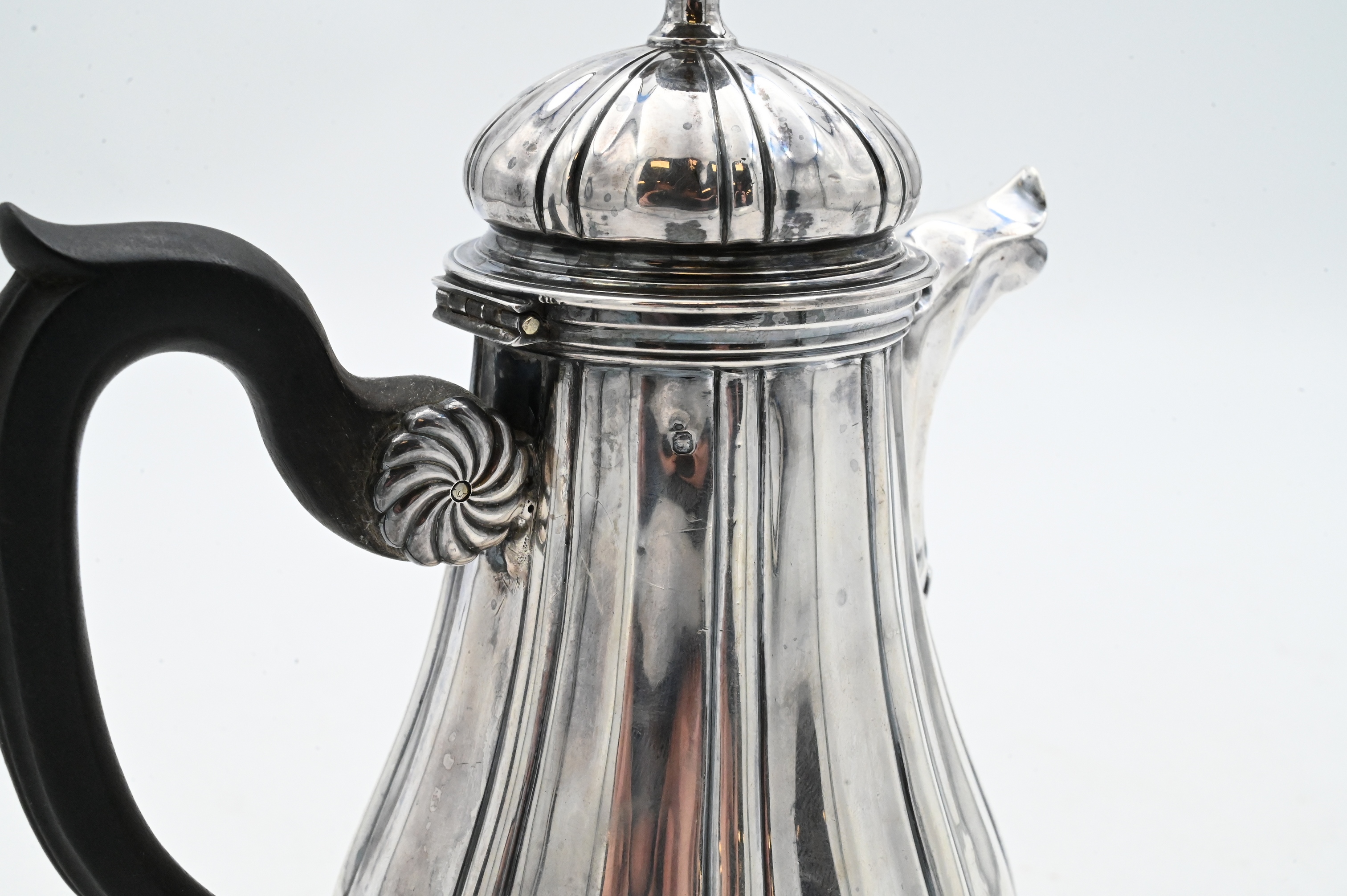 having fluted body and pinwheel and floral repousse marked “HG” in a diamond on bottom