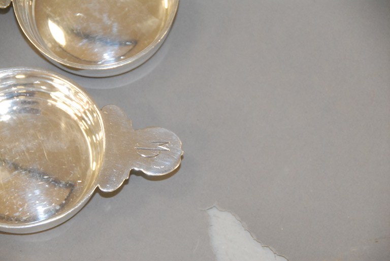 Four sterling silver small size porringers, 8.3 t oz. monogrammed M.D. Provenance: Estate of Judy Gengras McDonough of West Hartford, CT.