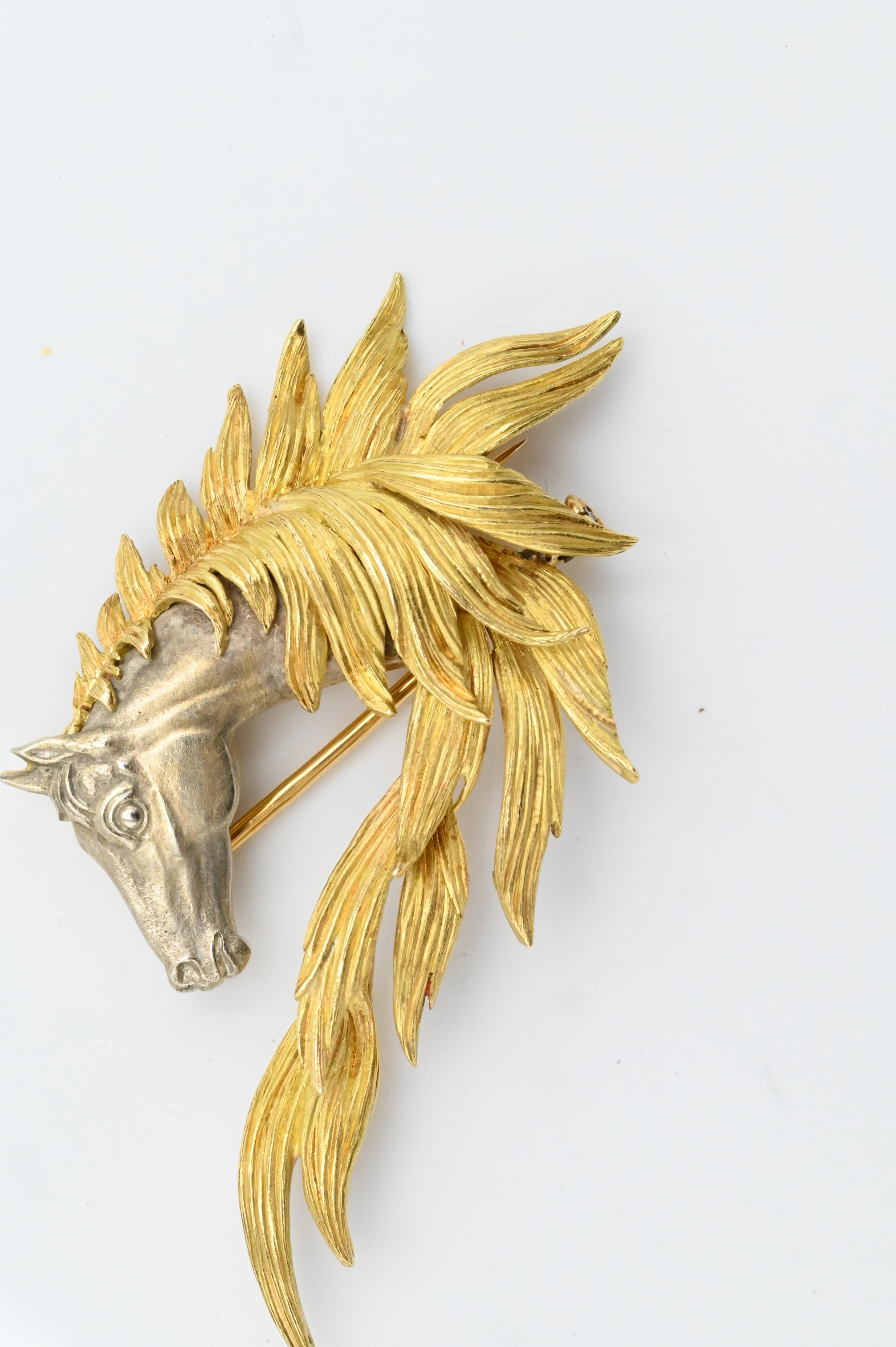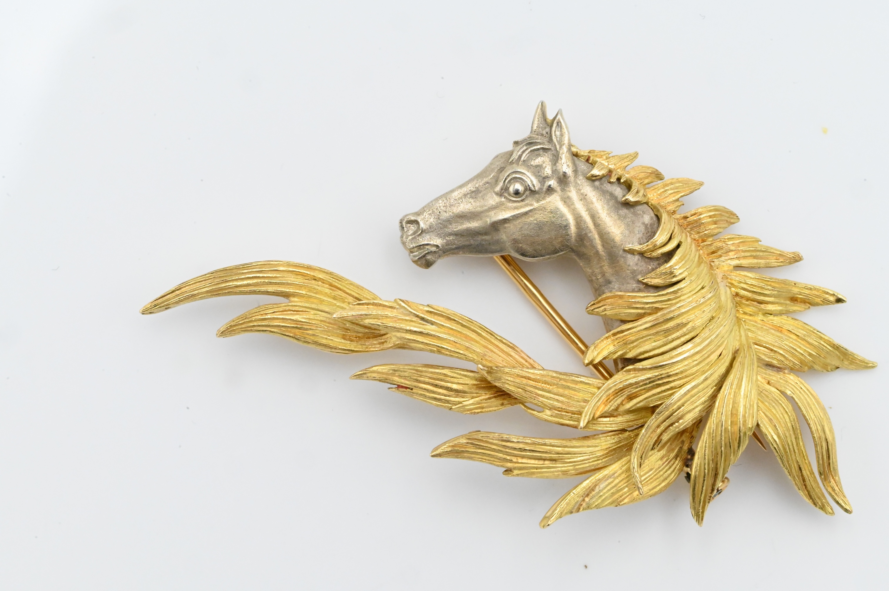 Lot 10: Hermes 18K Yellow and White Gold Horse Brooch