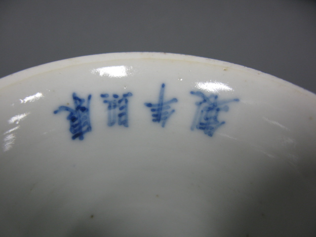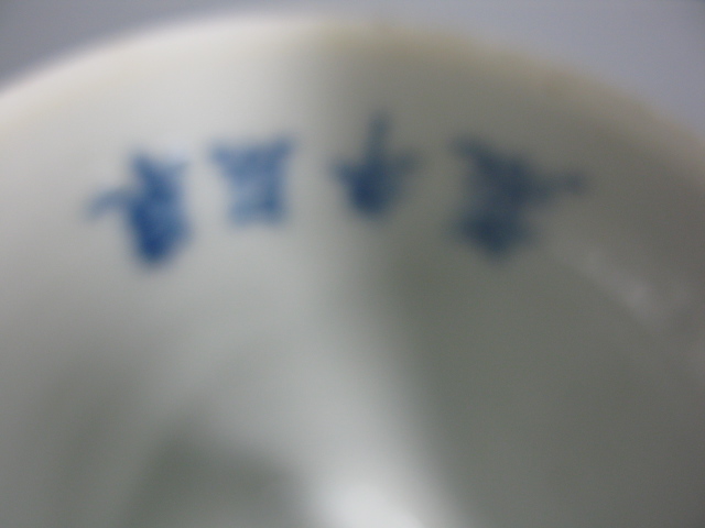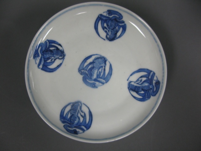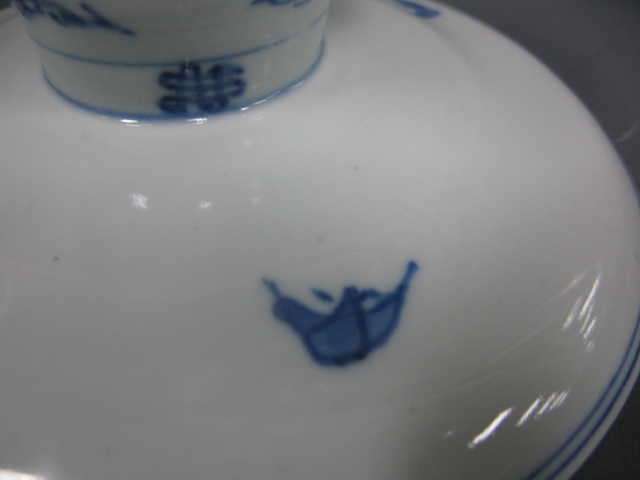 Oriental porcelain blue and white stemmed plate having a bat decoration.
