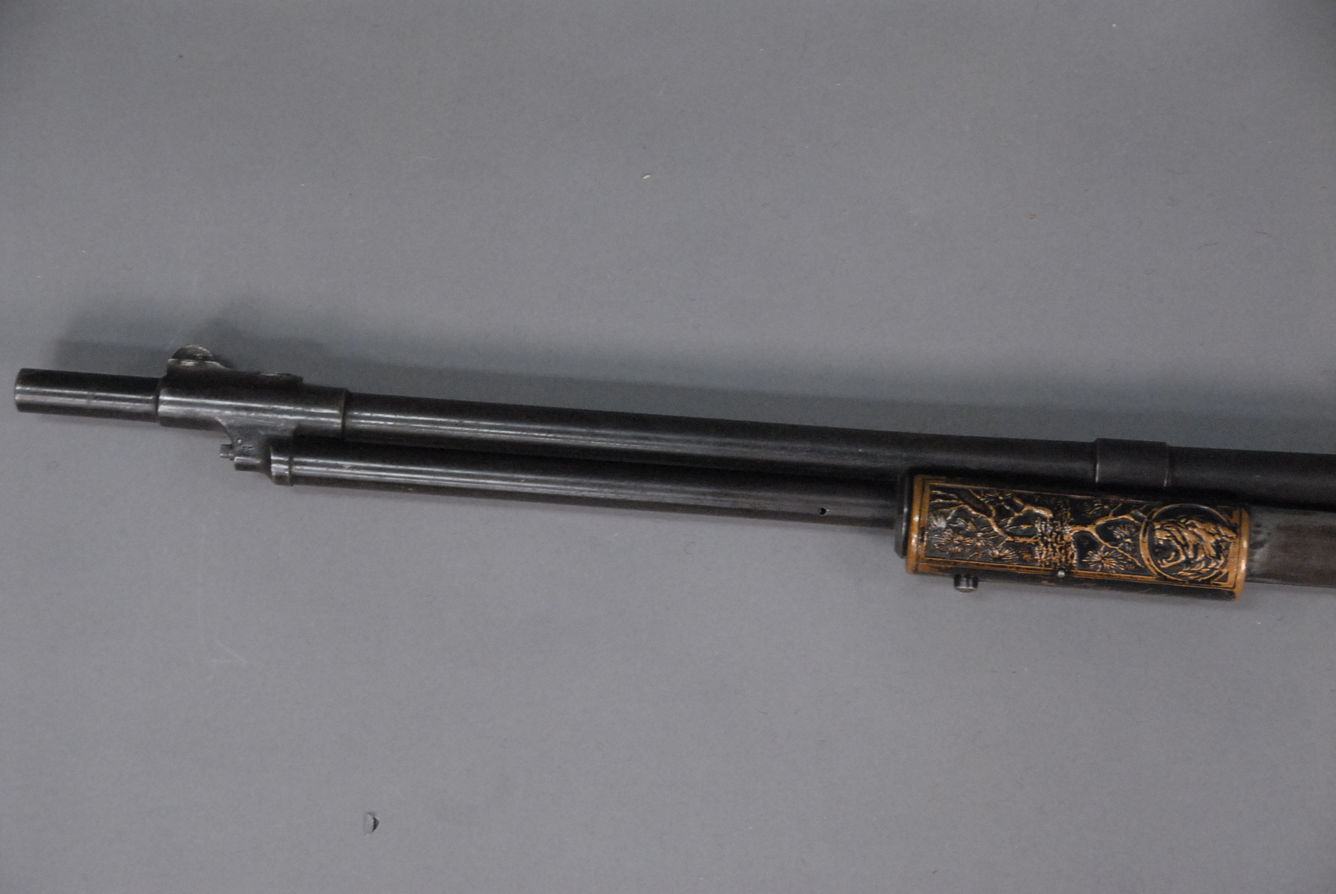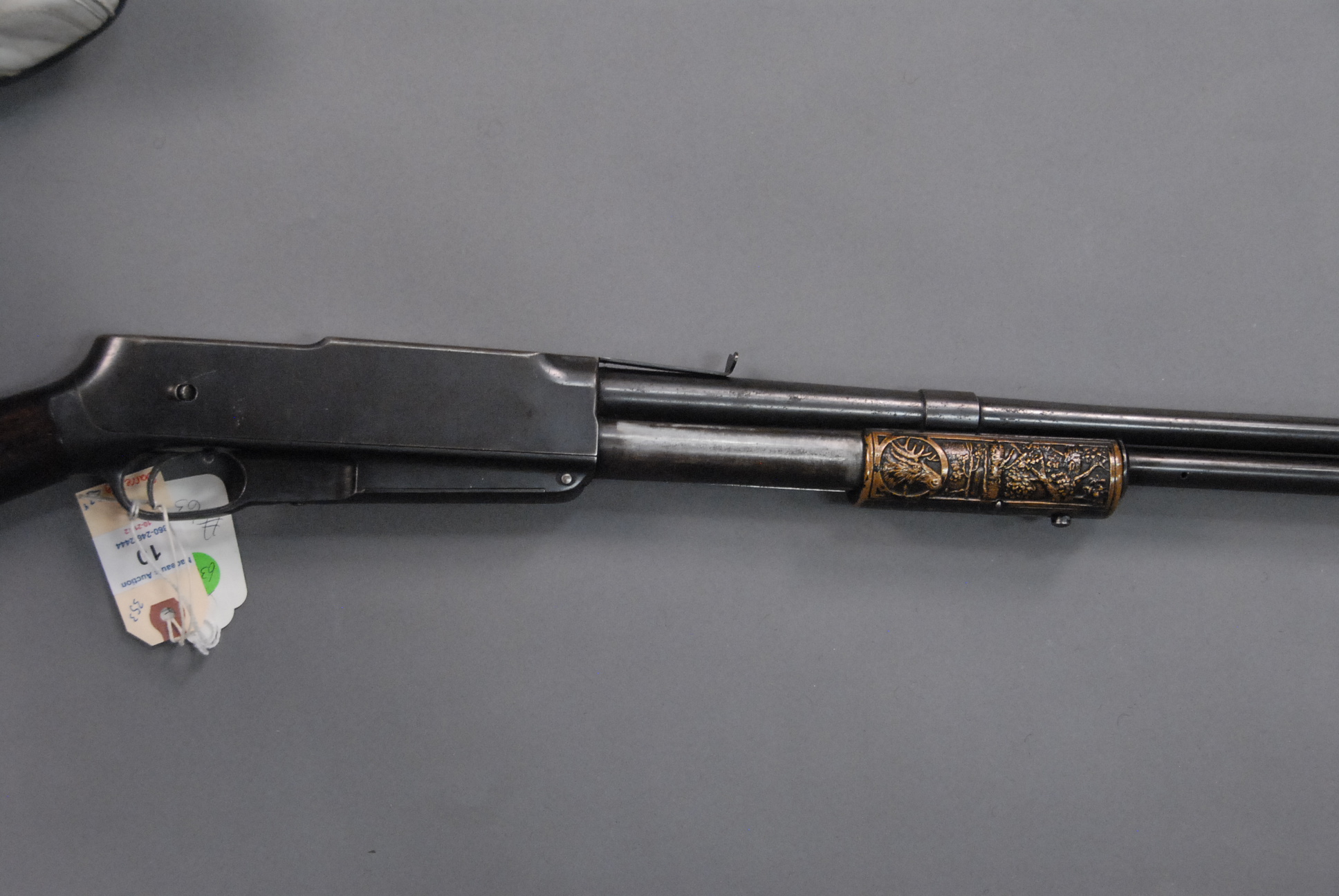Lot 10: Standard Arms Company, model M, slide action rifle with decorative brass forearm and butt, barrel lg. 22, sn 6785, 353.