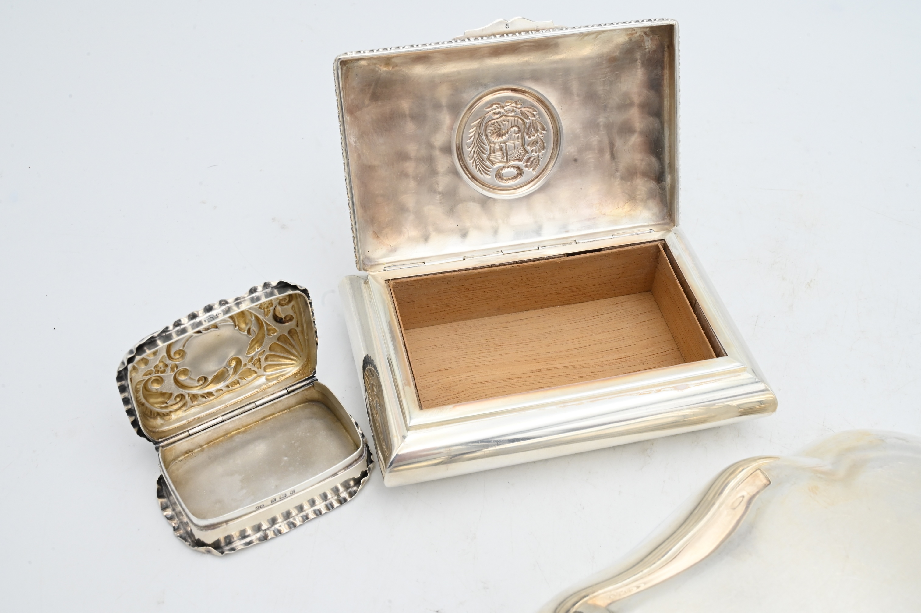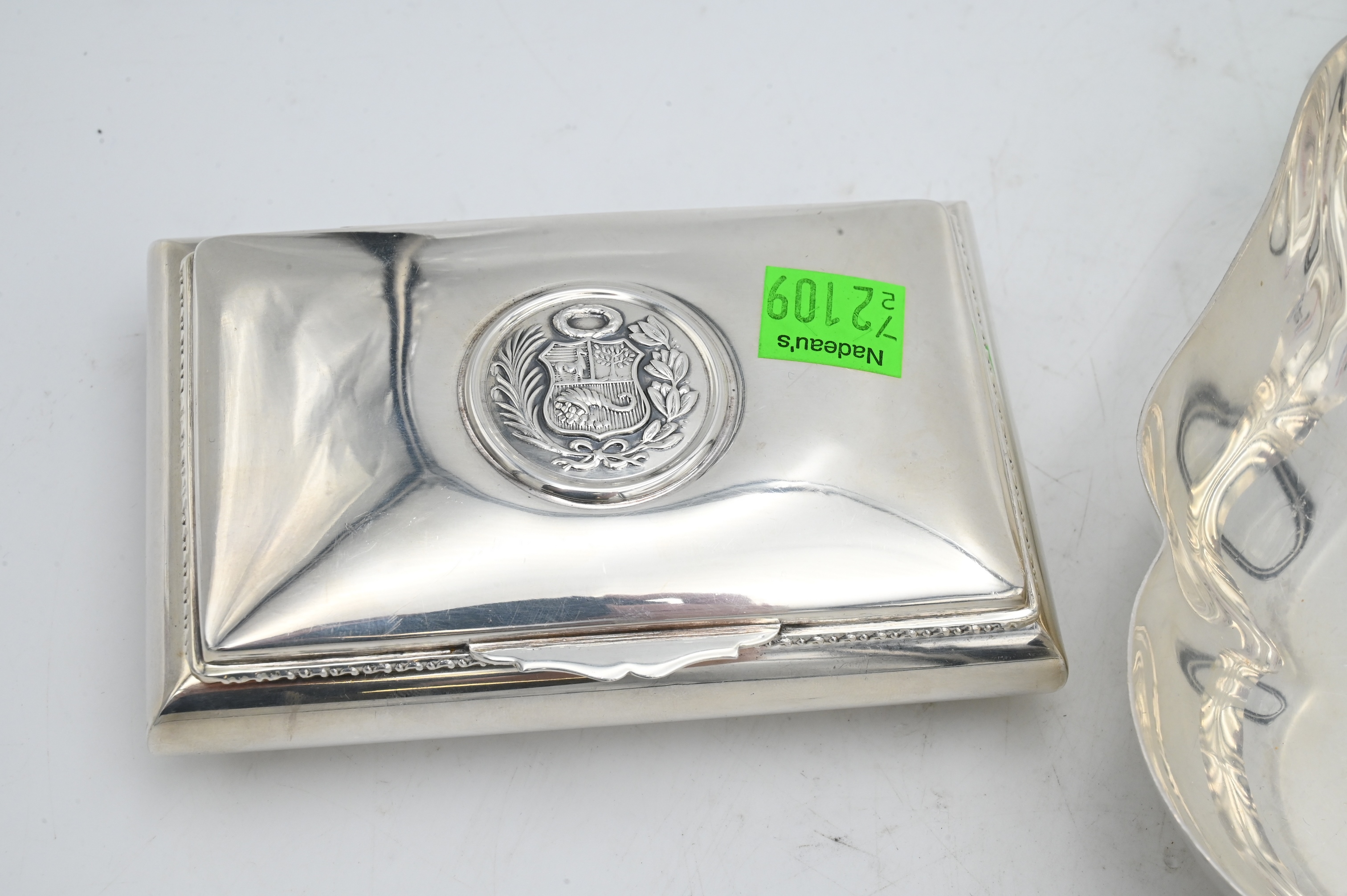 to include a Tiffany and Company sterling silver square dish, Camusso sterling silver Peru box, and a continental pill box