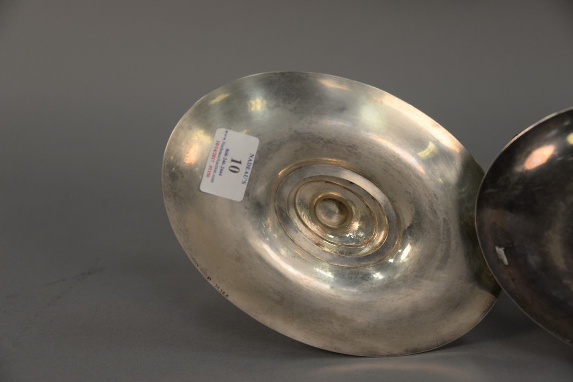 Two Chinese wine vessels in archaic jue form, Qing.