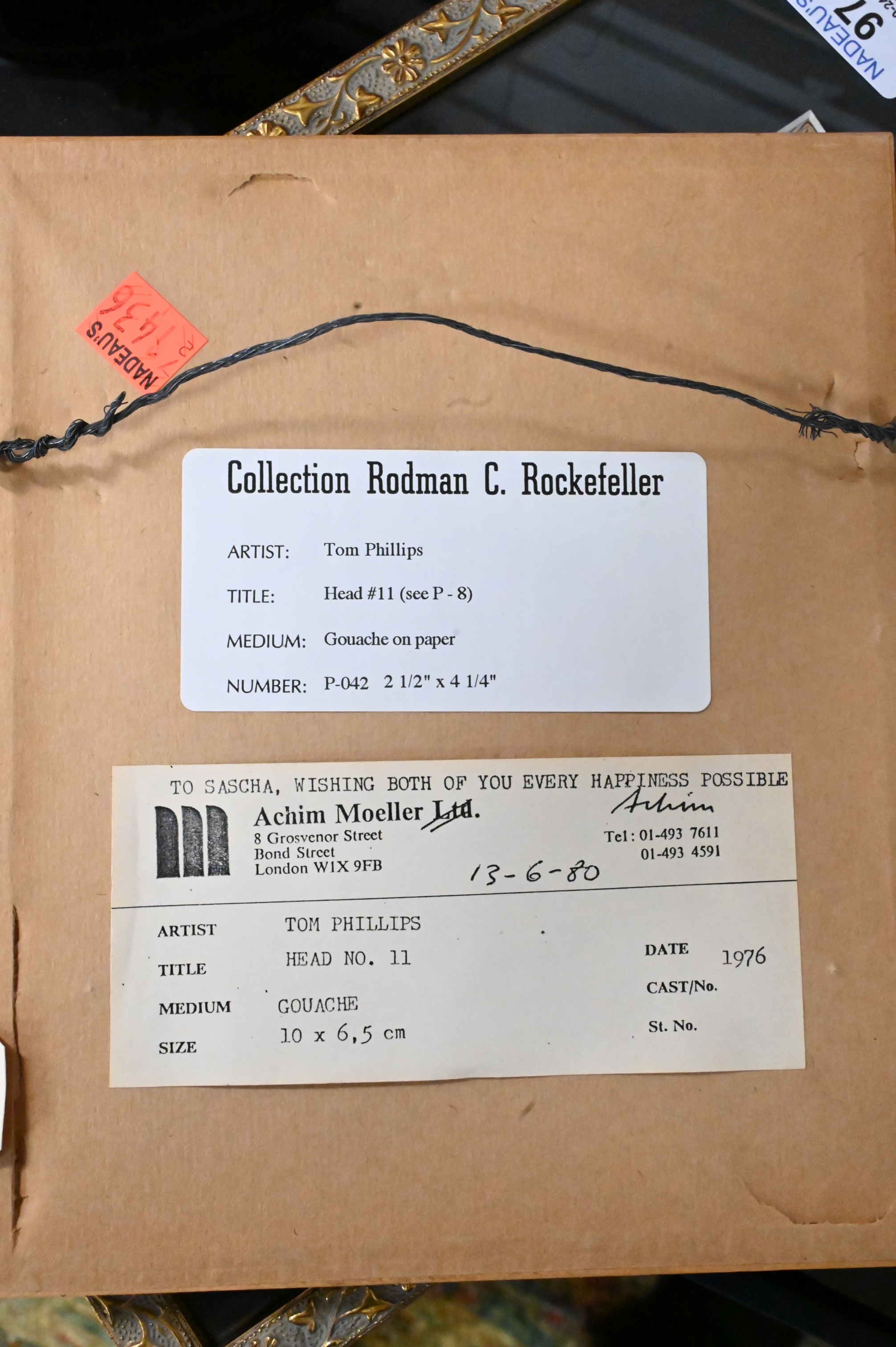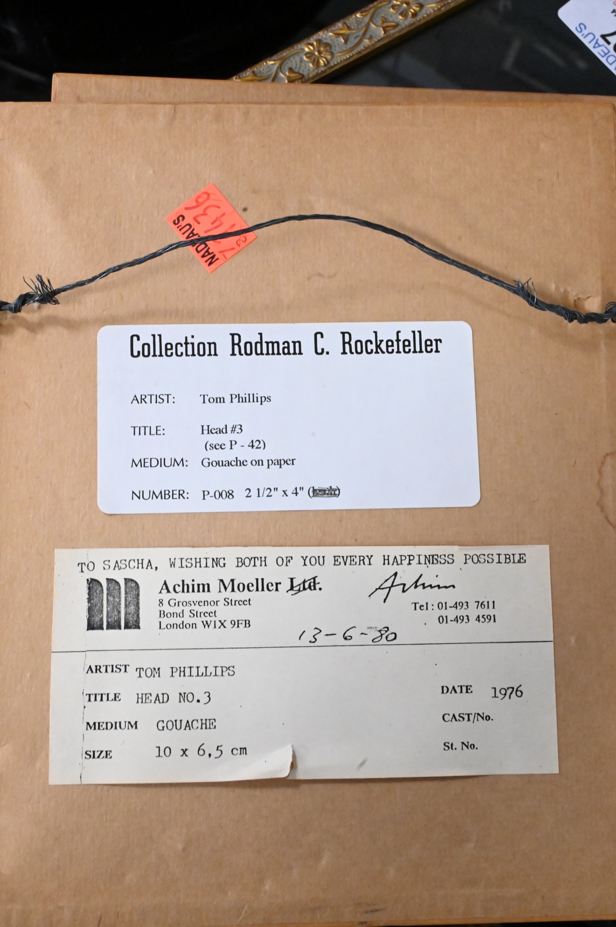 A Pair of Tom Phillips (b. 1937), to include Head No. 3, along with Head No. 11, 1976, gouache on paper, each signed lower right, Achim Moeller label, 4 1/4″ x 2 1/2″.