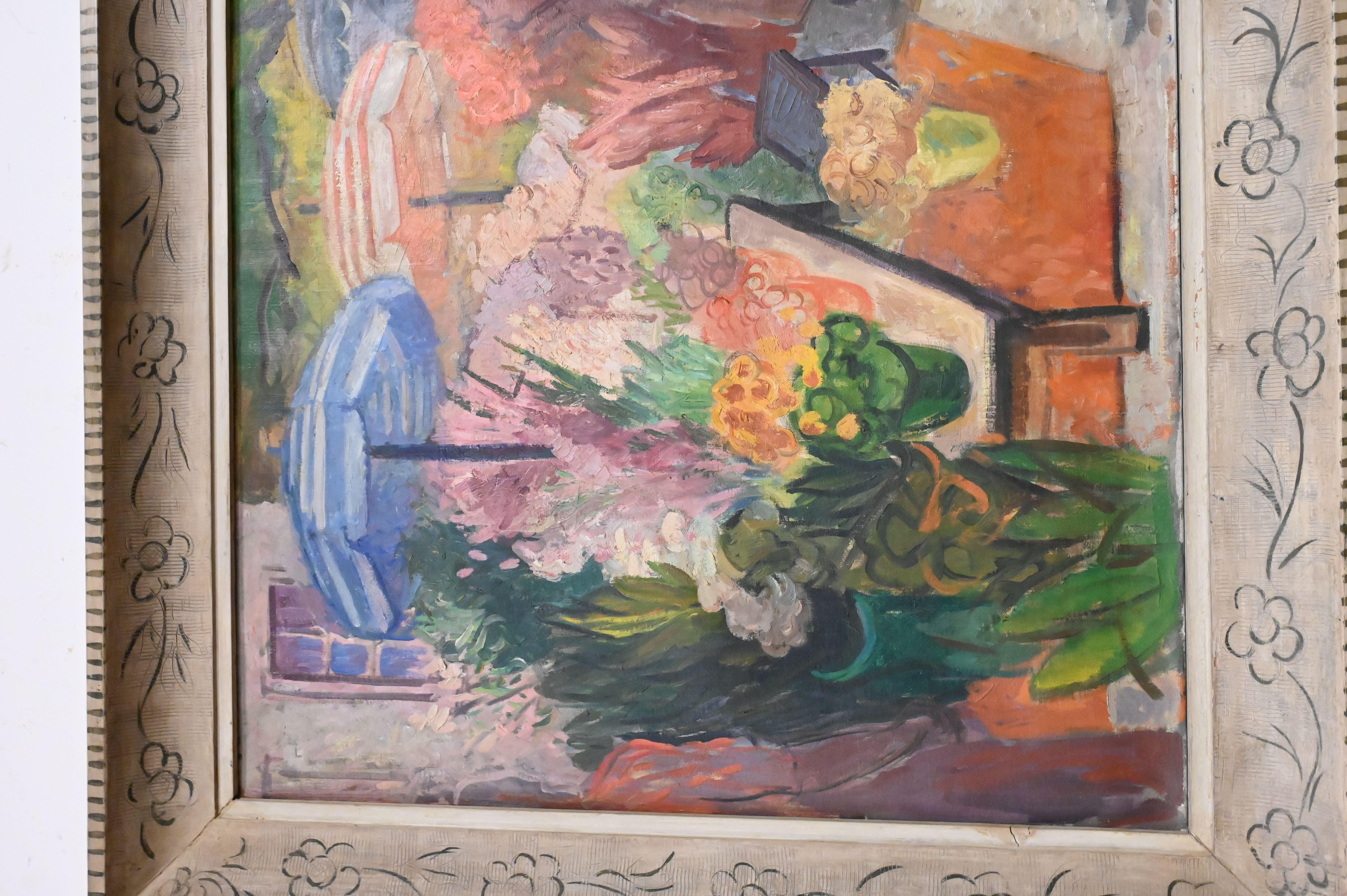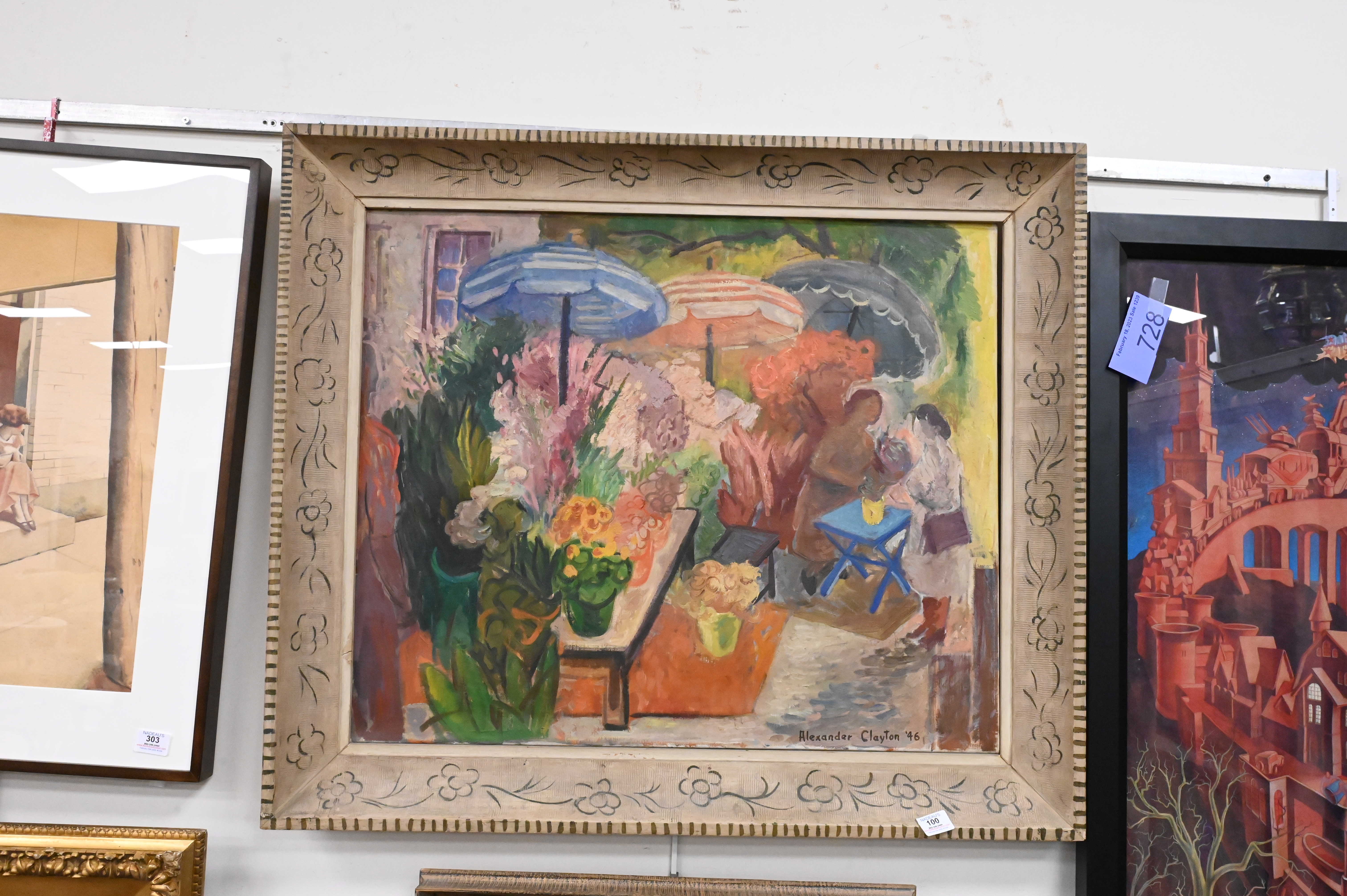 Alexander Benjamin Clayton (b. 1906), oil on canvas, florist selling flowers, signed lower right “Alexander Clayton, ’46”, 25″ x 30″.