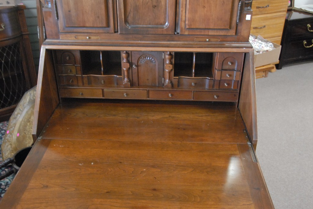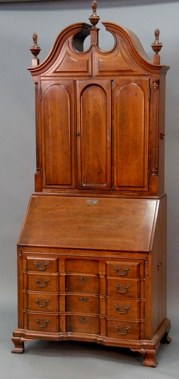 Block front cherry secretary desk by Maddox Colonial, ht. 92in.