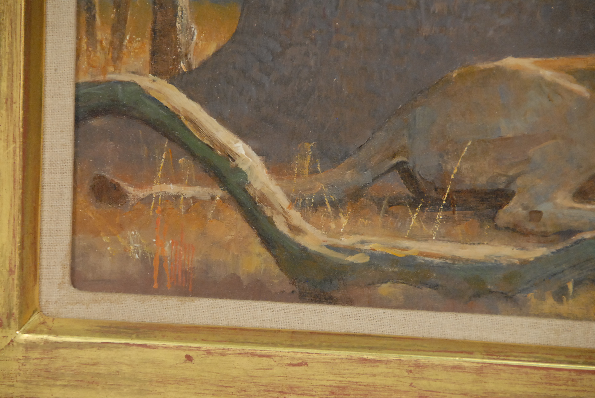 Bob Kuhn LION AND LIONESS oil on board signed lower left Kuhn marked on reverse: All reproduction rights are reserved by the artist Bob Kuhn 1989 Marked on reverse on tape: Mara Evening painted for Leonie and Geddes Parsons to celebrate the twenty years of marriage Bob Kuhn/1989 14 x 18