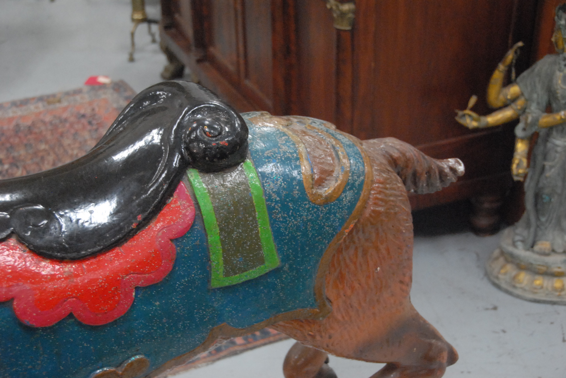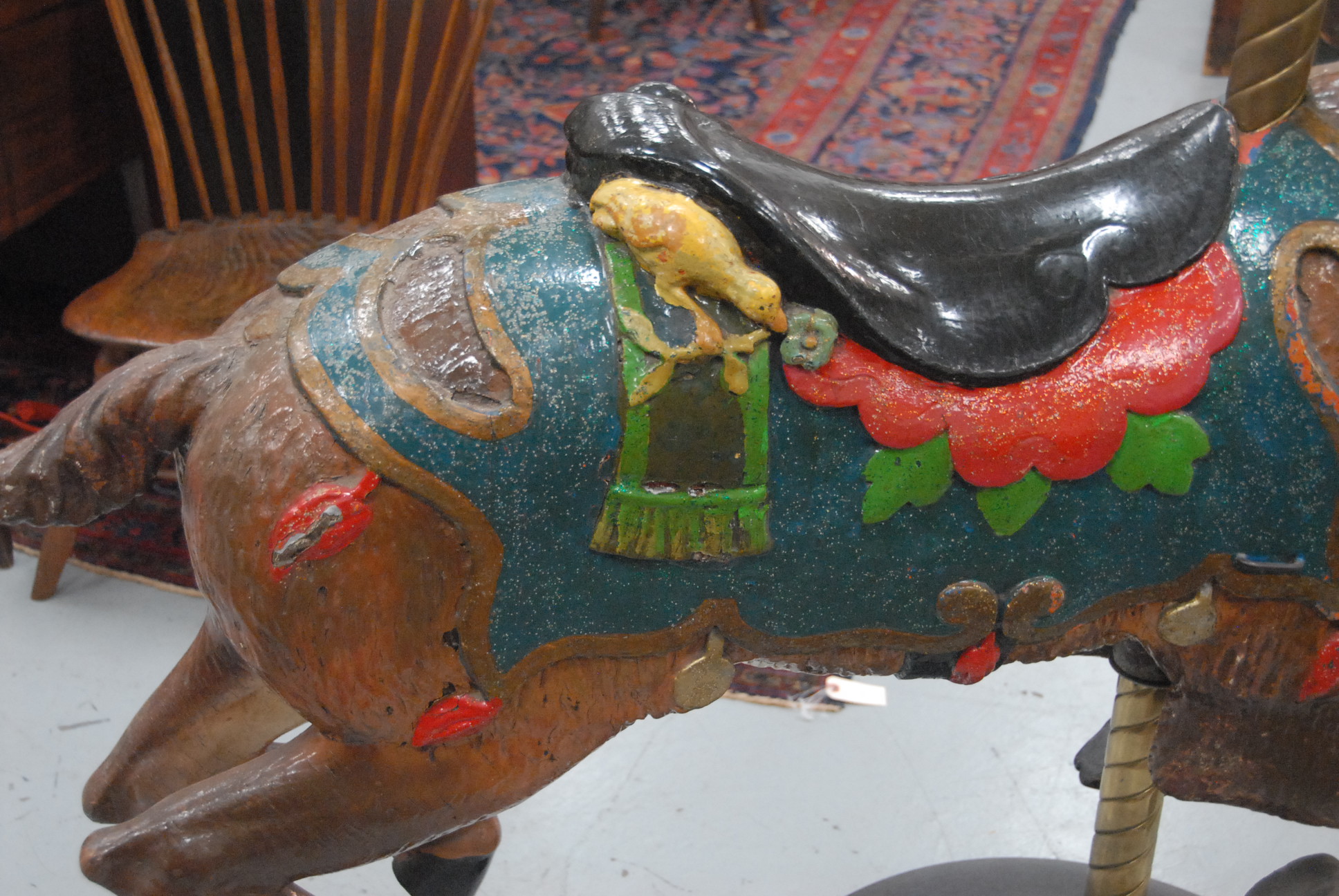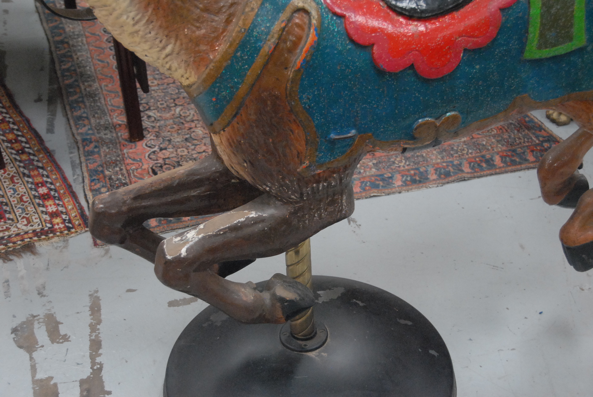 Carousel deer from E. Joy Morris in old park paint. Provenance: Carousel from Quassy Amusement Park, Middlebury, CT, Oct. 21st 1989, Lot #19 with catalog and article of 1989 auction. deer only: ht. 50 in. lg. 54 in.