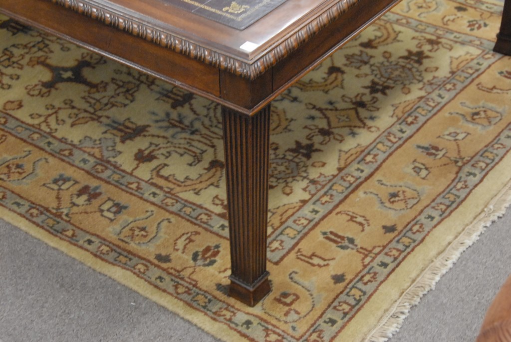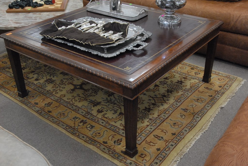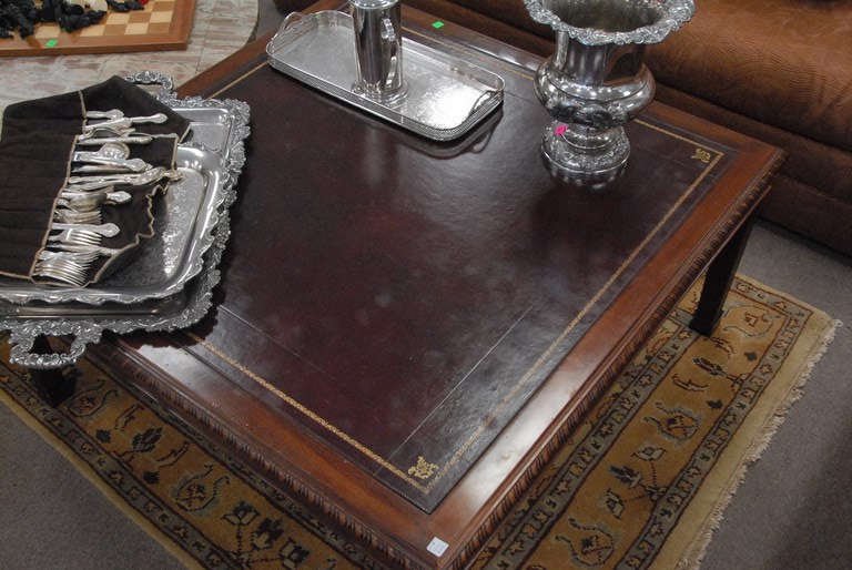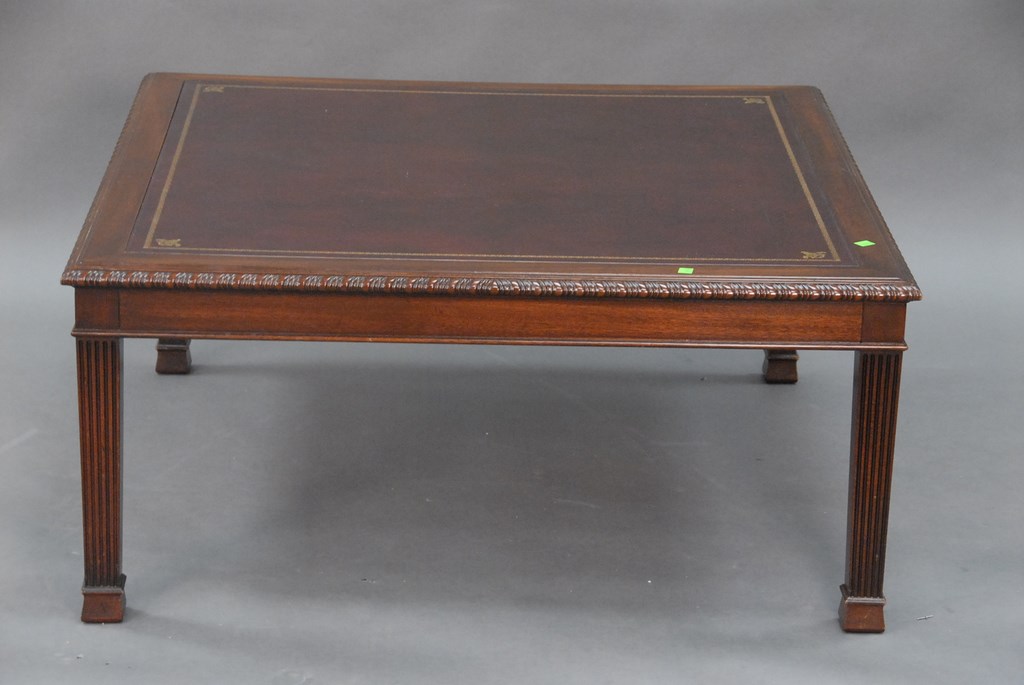 Chippendale style leather top coffee table.