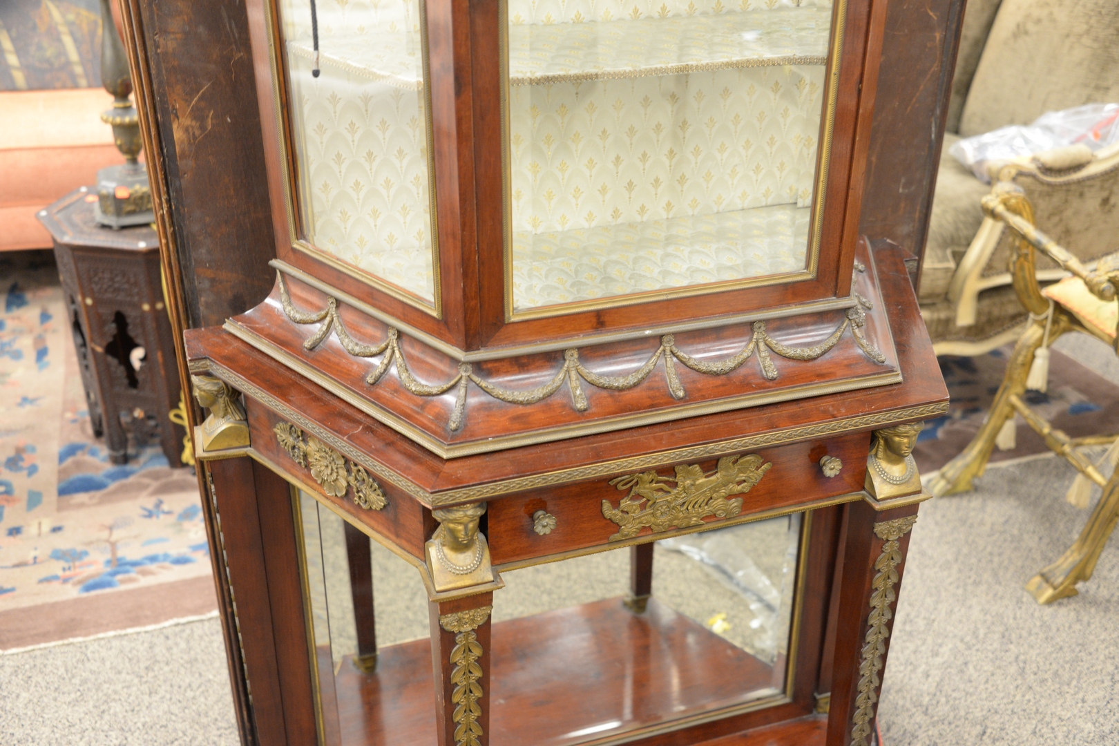 French Empire Bronze Mounted Vitrine, height 88 inches, width 35 inches, depth 15 inches.