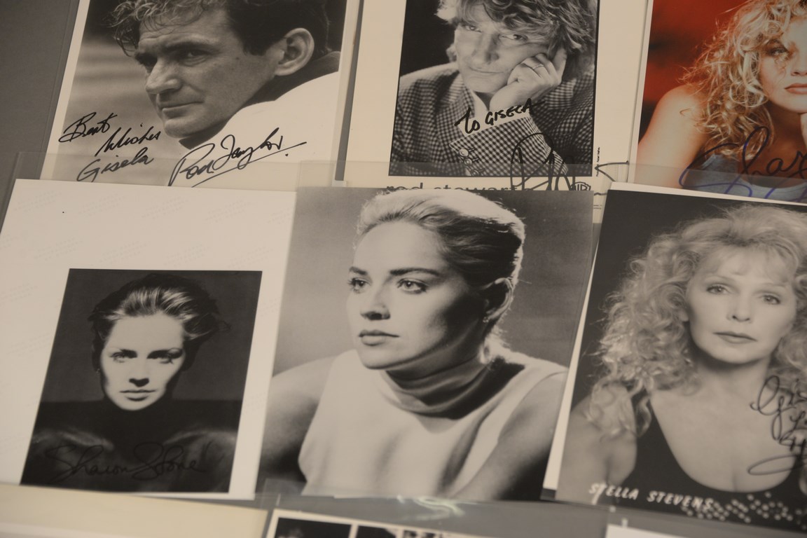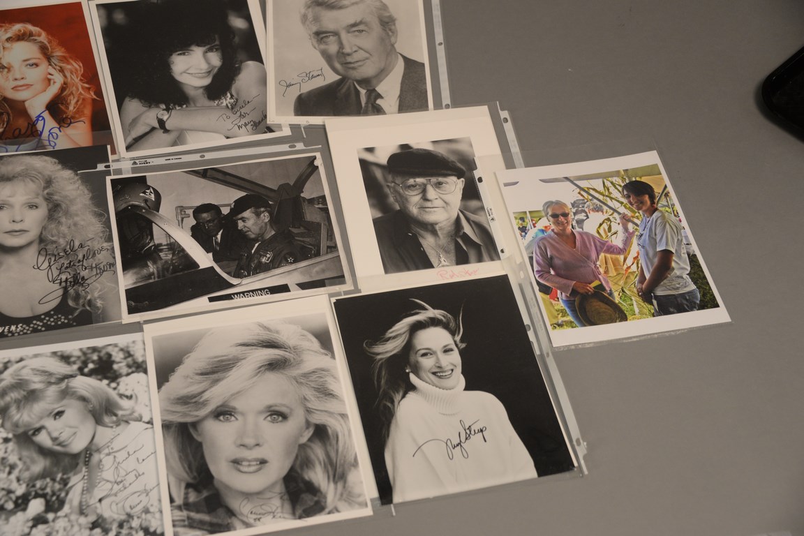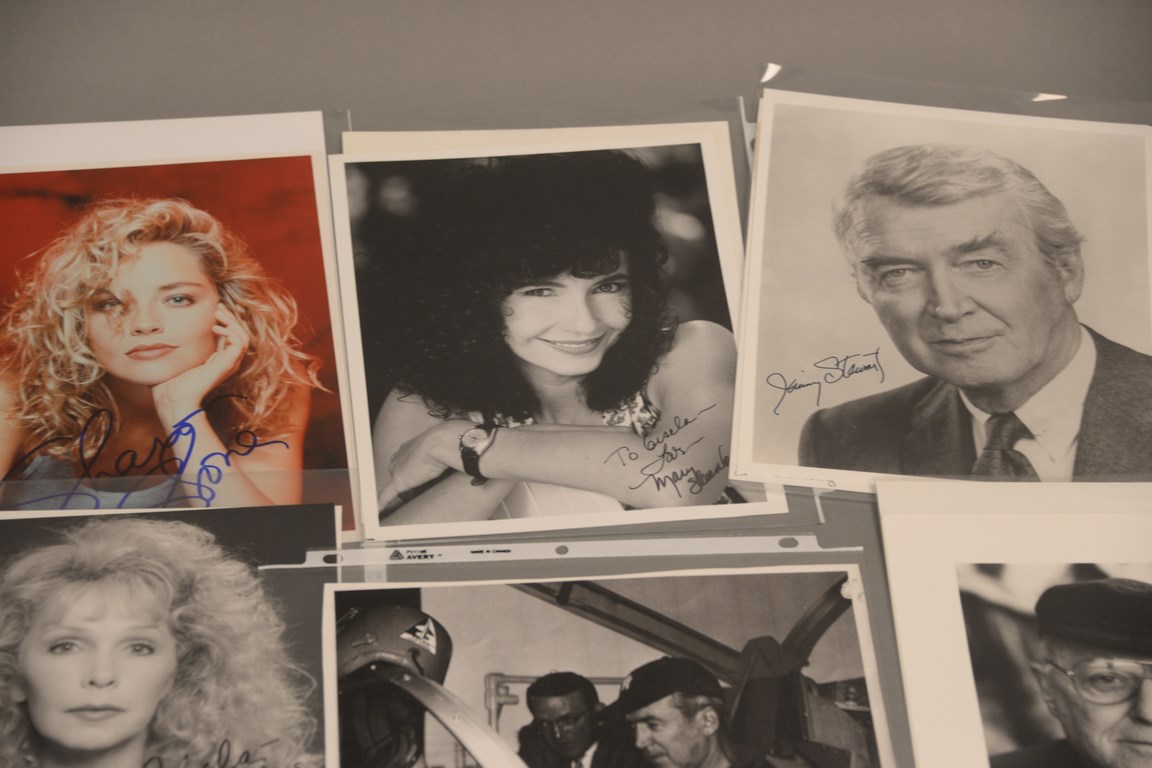 Group of 30 photographs, 27 are autographed photographs including 2 Meryl Streep, 1 Barbara Streisand, 5 Connie Stevens, 3 Robert Stack, 1 Rod Steiger, 1 Jan Sterling, 1 Jimmy Stewart, 1 Dean Stockwell, 1 Mary Steenburgen, 2 Adele Stevens, 7 Sharon Stone, 1 Rod Stewart, 1 Russ Tamblyn, 1 Rod Taylor and 3 unsigned photographs including 1 Meryl Streep, 1 Jimmy Stewart, and 1 Charlize Theron.