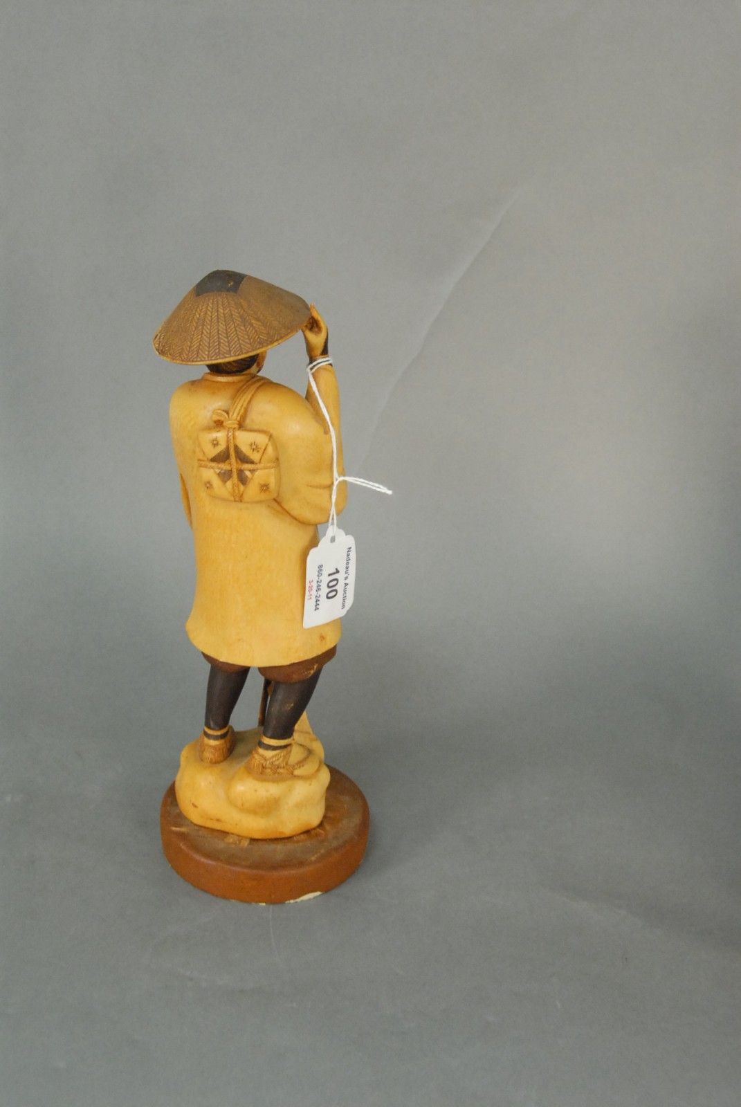 Japanese ivory figure of a wayfarer with staff and satchel, signed, 20th century.