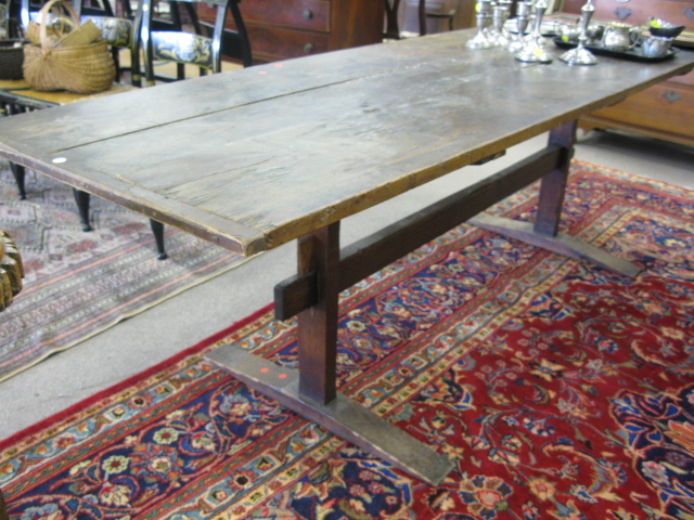 Primitive style trestle foot table