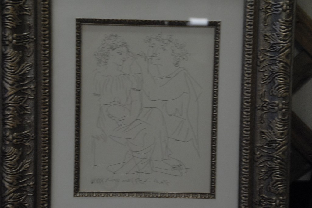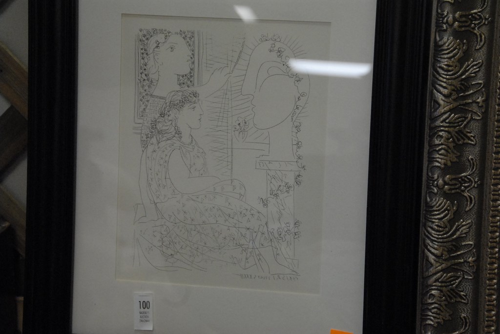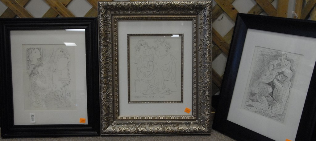 Lot 100: Three Picasso framed prints: Flute-player and Girl with Tambourine, The Rape, and Two Women Before Sculpture Head.