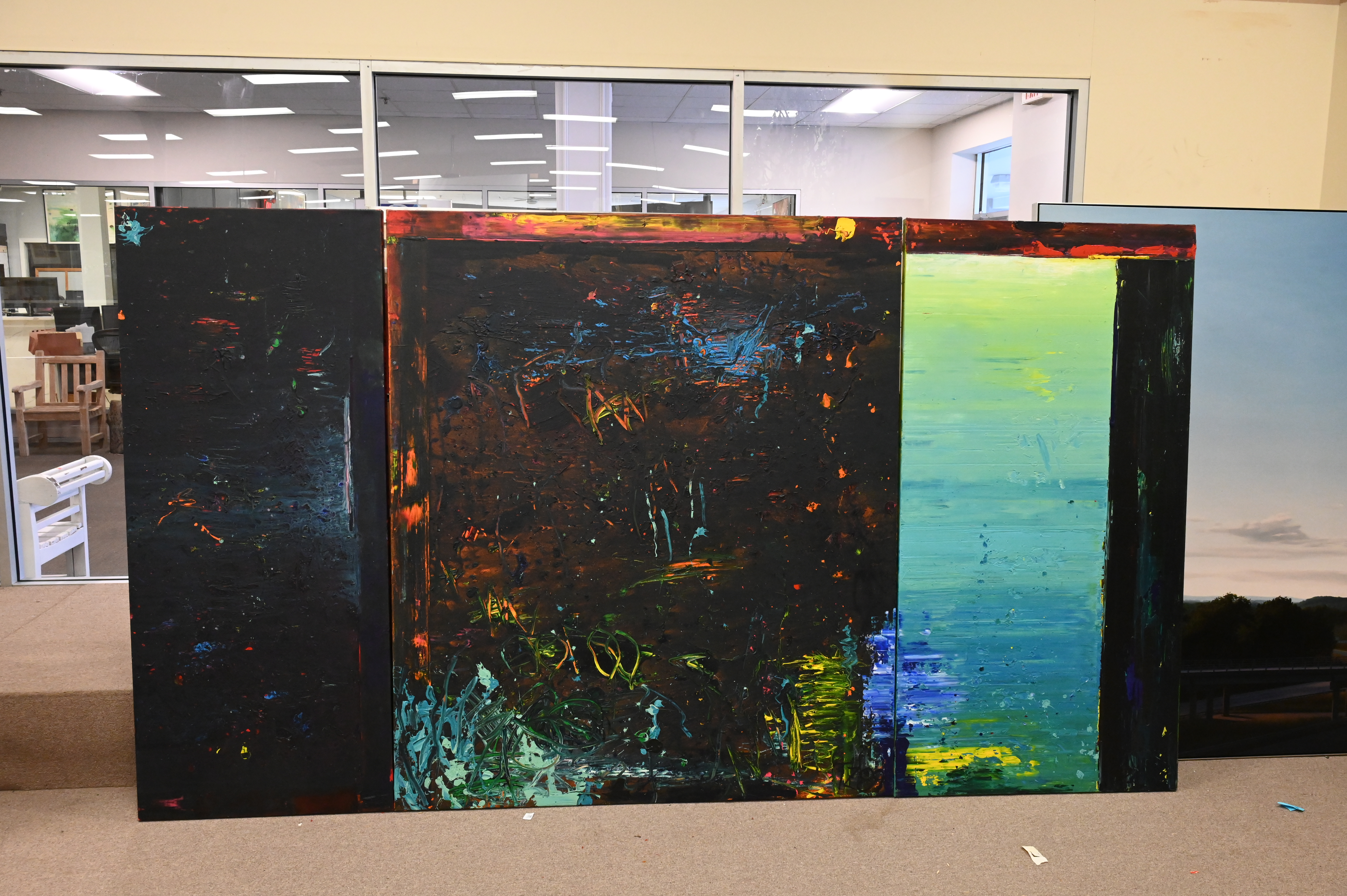 Acrylic on canvas, on three panels