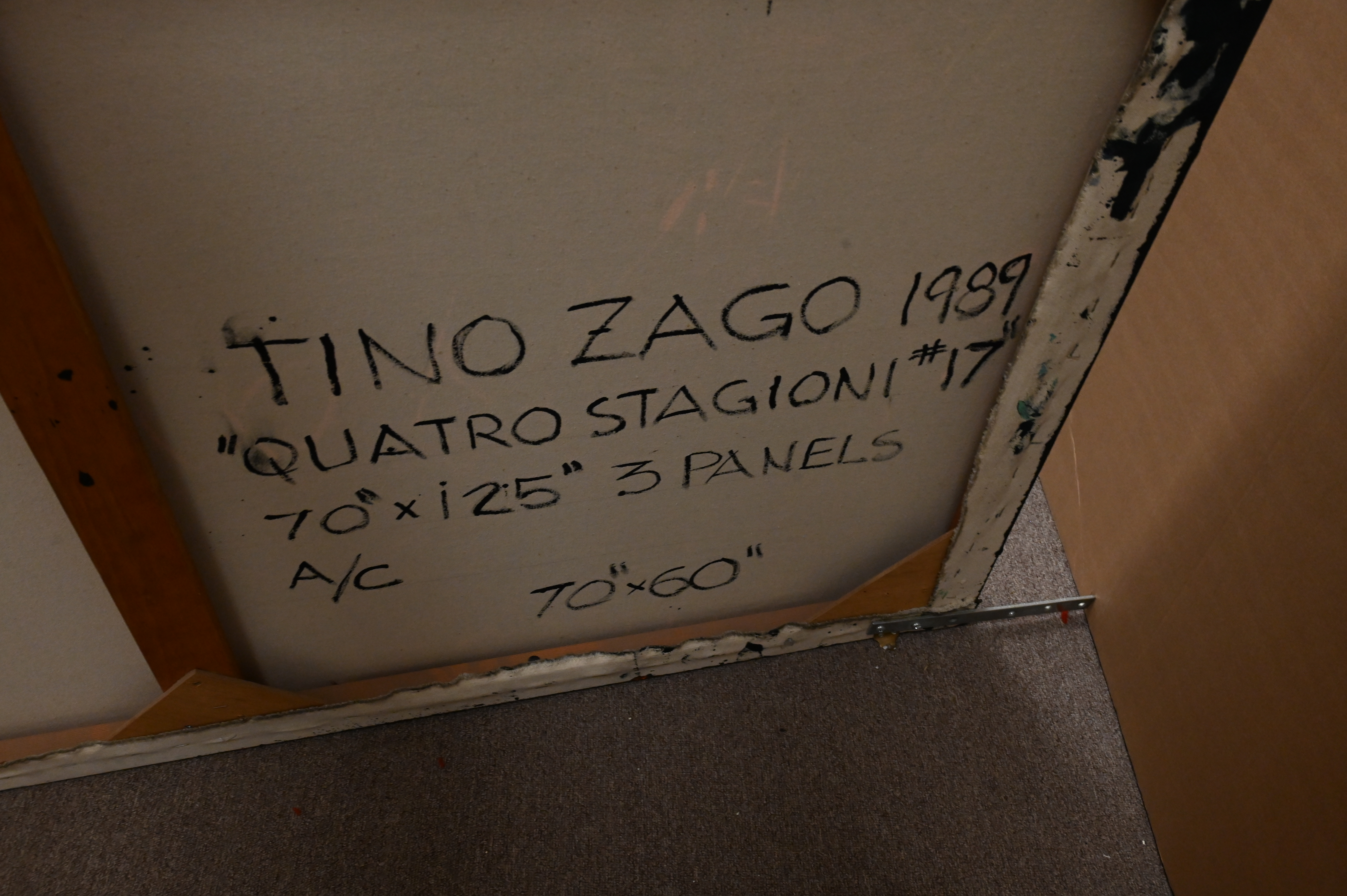 Signed, titled, and dated on verso Tino Zago 1989