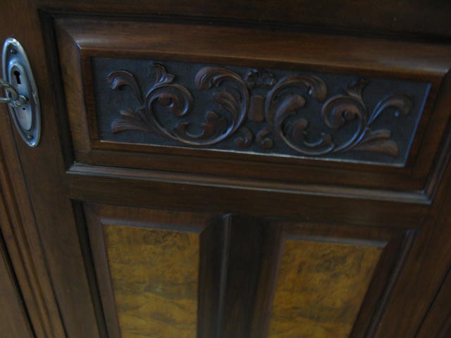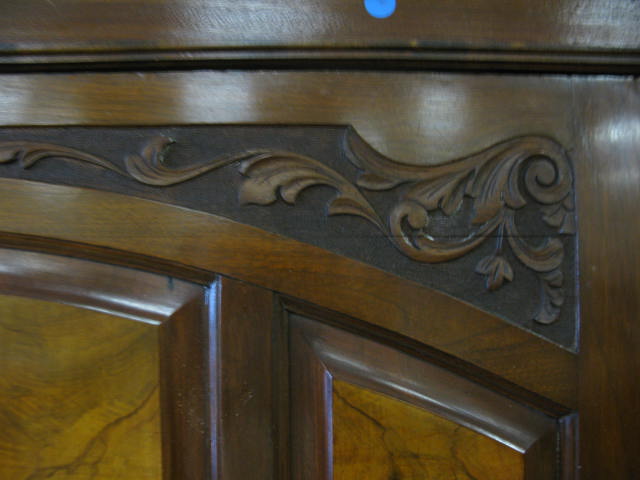 Walnut and burl walnut two door armoire with full mirror on one door.