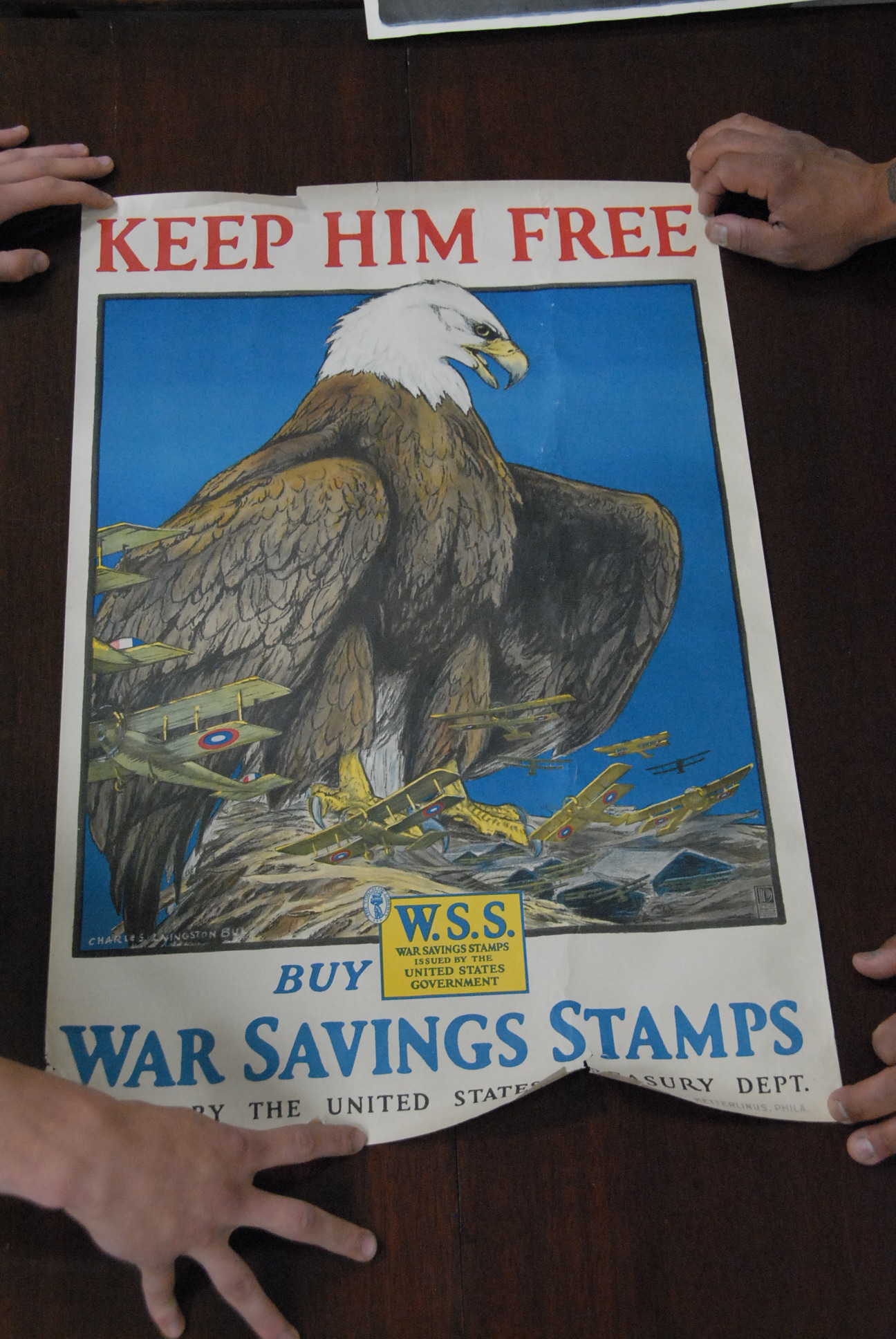 Two posters Invest In The Victory Liberty Loan and Keep Him Free War Saving Stamps