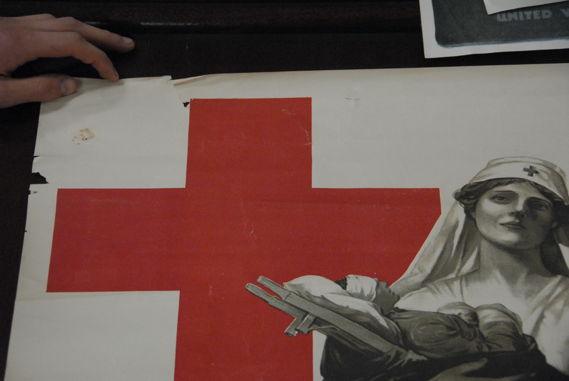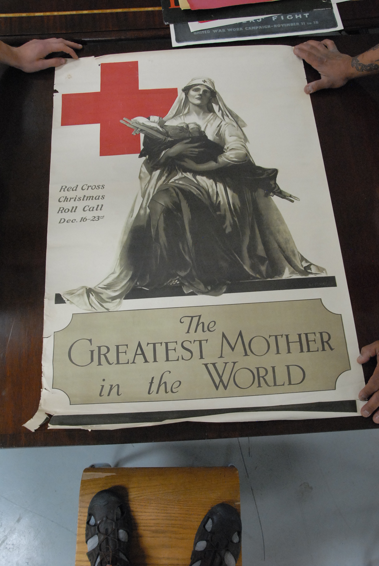 Four posters, I Summon You To The Comradeship Red Cross poster, The Greatest Mother In The World Red Cross poster, Lend, and United States Of America War Savings Stamps & Thrift Stamps On Sale Here