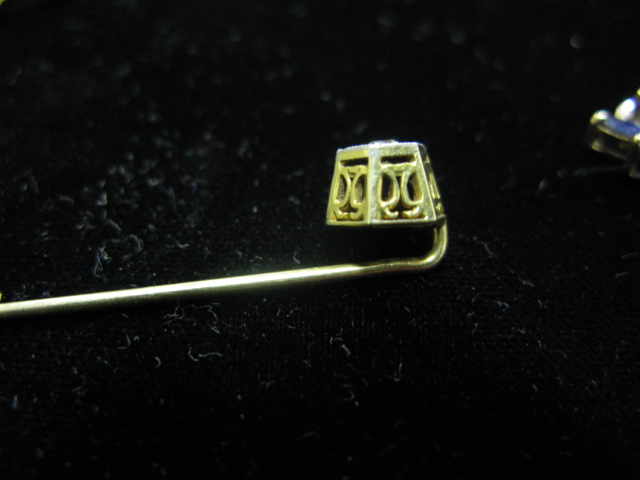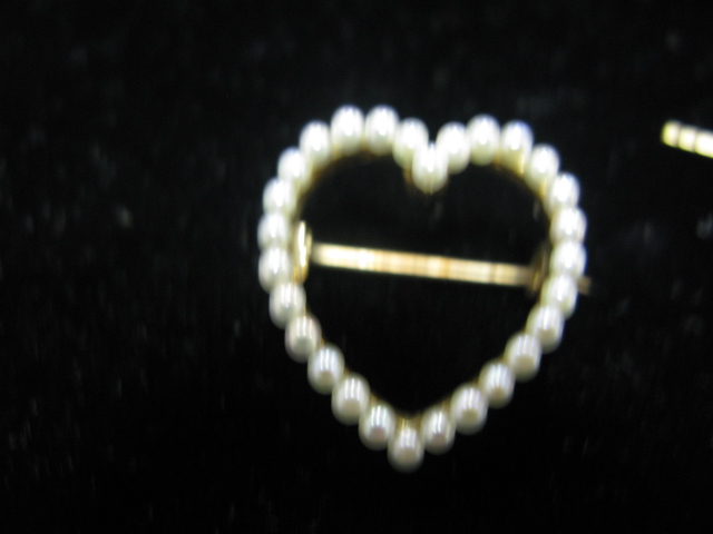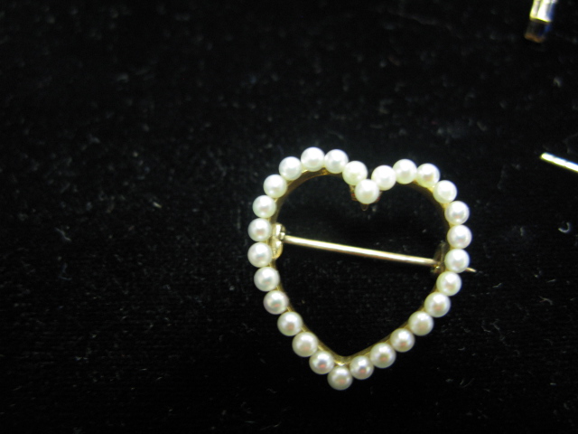 Group lot to include 14k gold, heart shaped pin, oval pin, earrings, pendant, and stick pin with diamond.