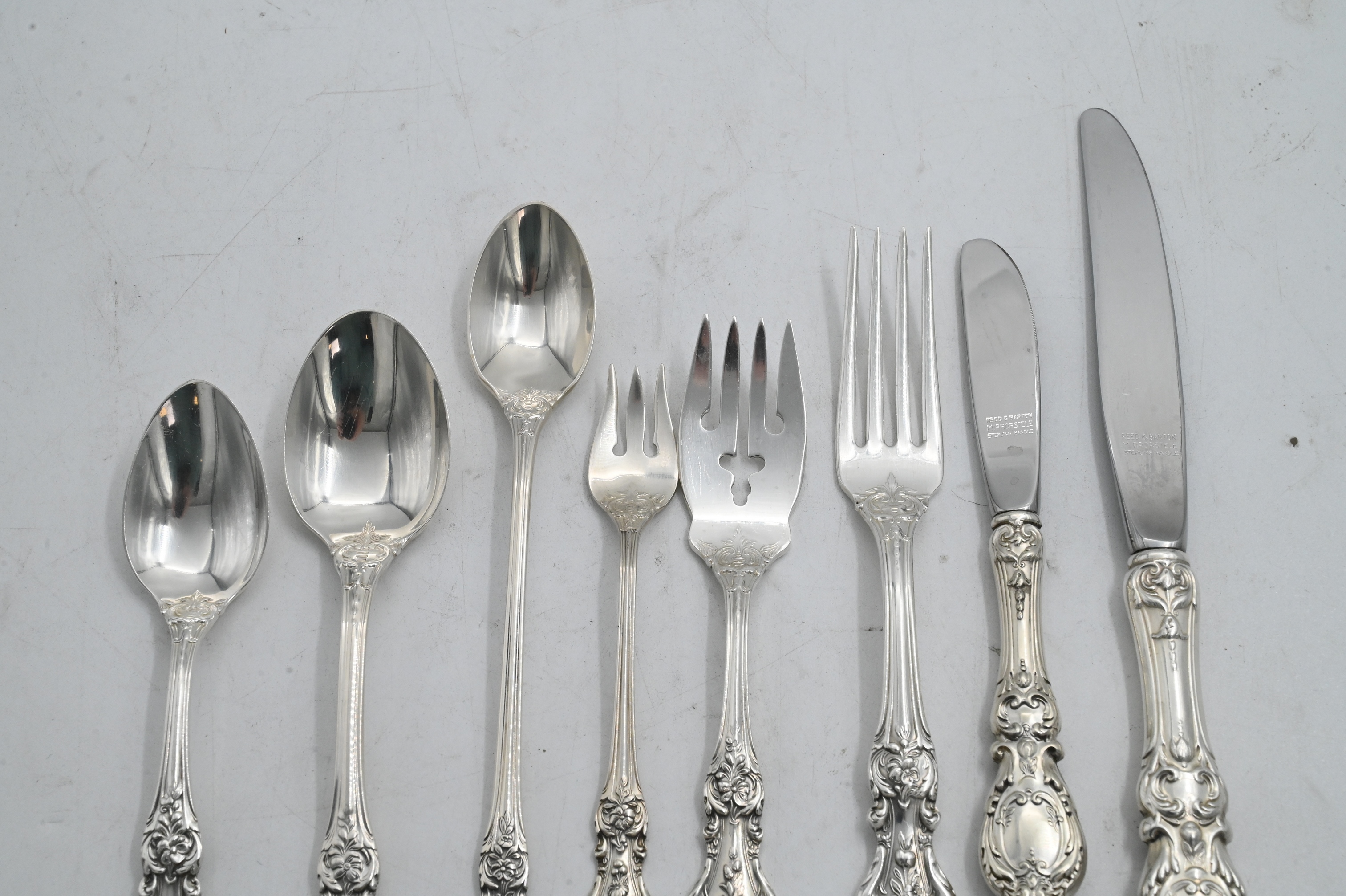 109 Piece Reed and Barton Sterling Silver Flatware Set in Francis I Pattern