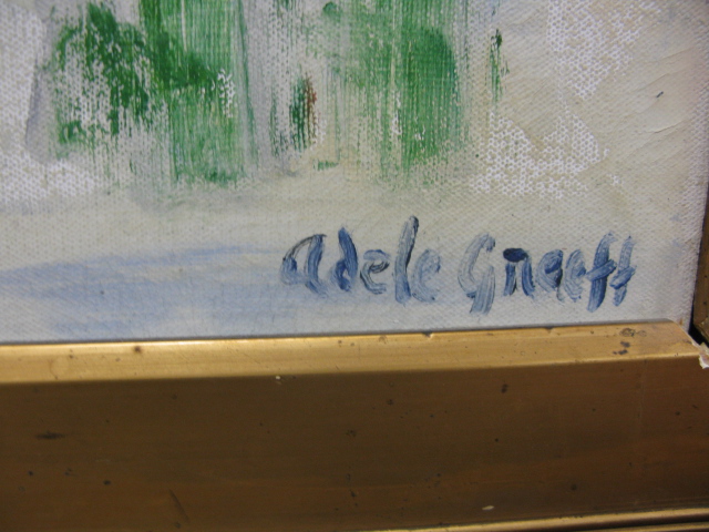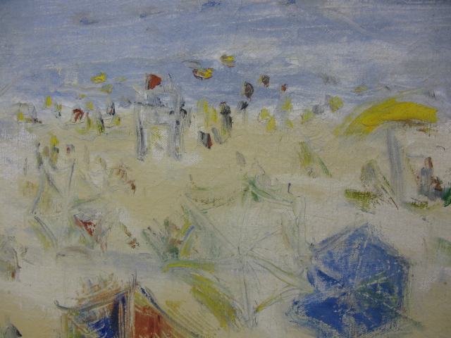 Adele Greeff, oil on canvas, beach scene, titled On the Beach, paper label on the back.