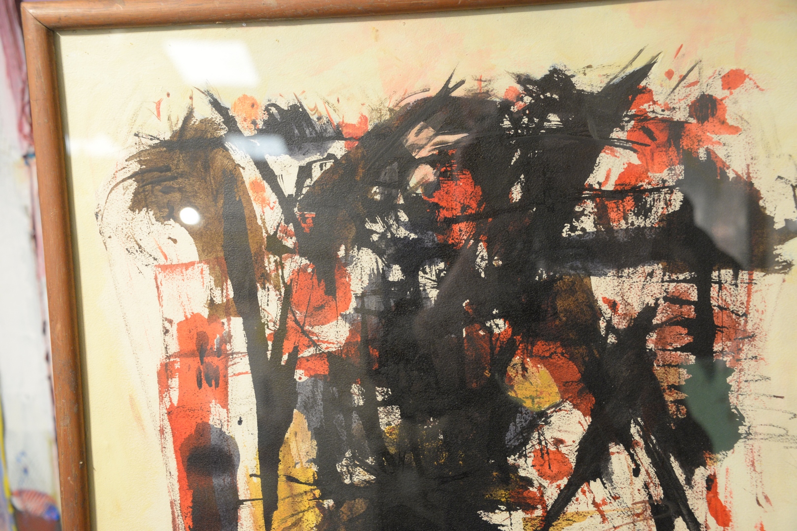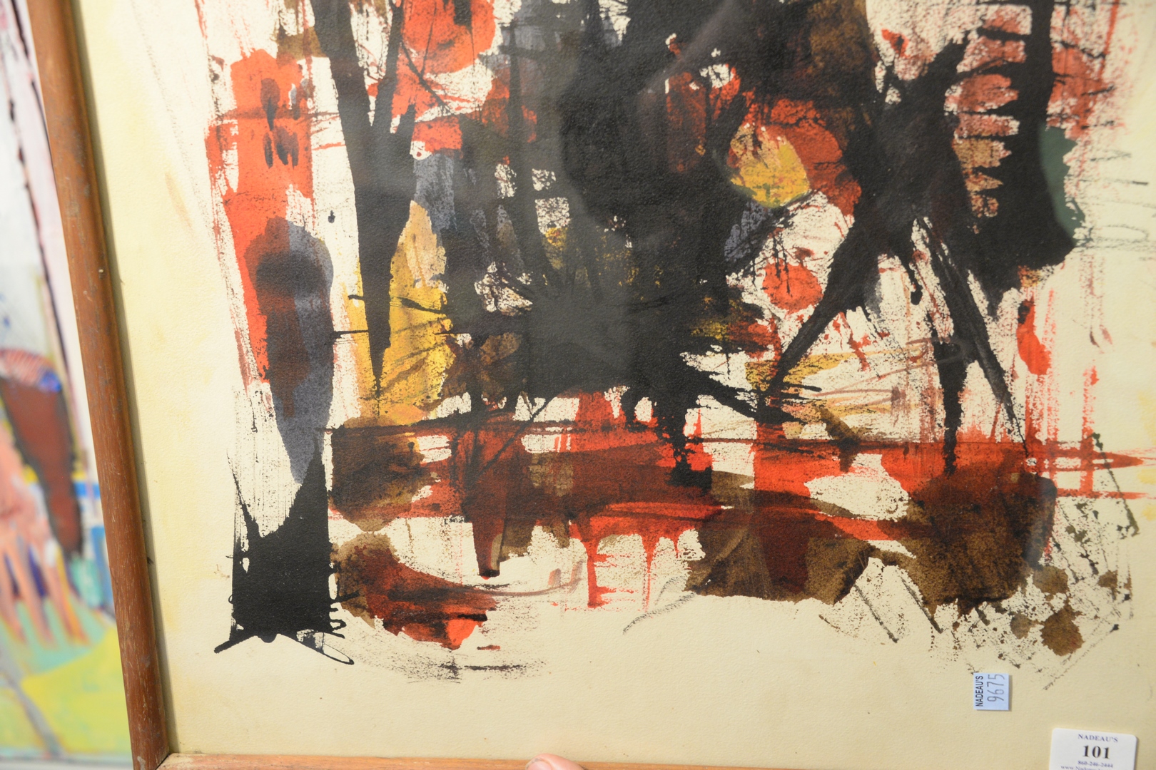 Lot 101: Attributed to Antonio Saura (Spanish, 1930 – 1998), Lola, 1958, watercolor and gouache on paper, unsigned, unmarked label verso, sight size 22 1/2″ x 20 1/2″.