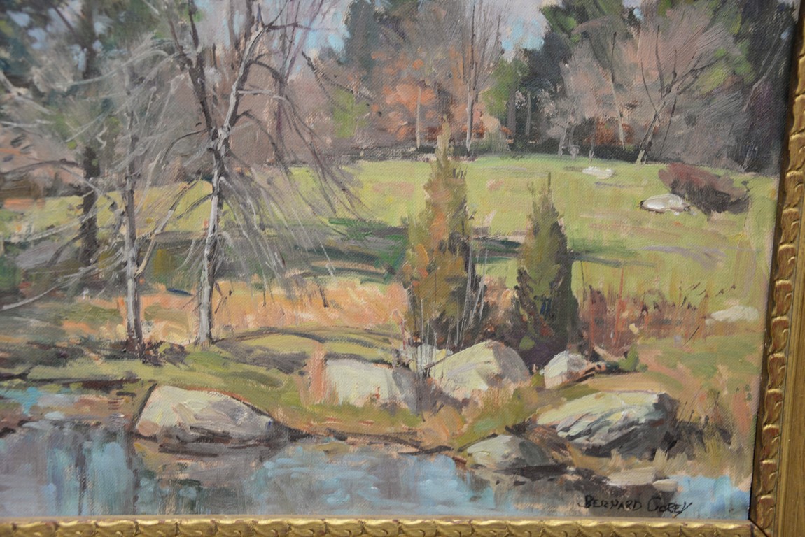 Lot 101: Bernard Corey American 1914-2000 Fall Landscape oil on board signed lower right: Bernard Corey Royka’s Fine Art label…
