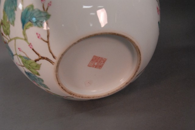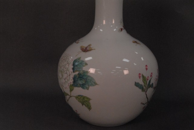 Famille Rose porcelain vase with Peony flowers design and QianLong mark, 19th-20th Century.