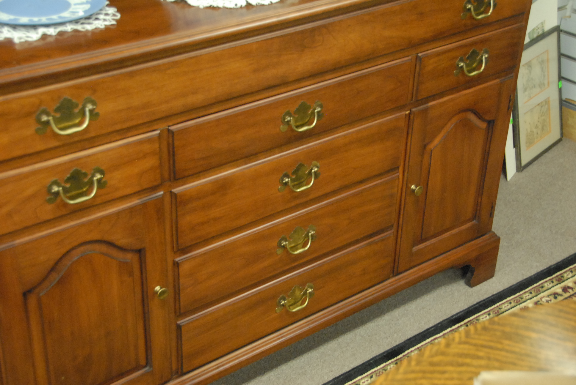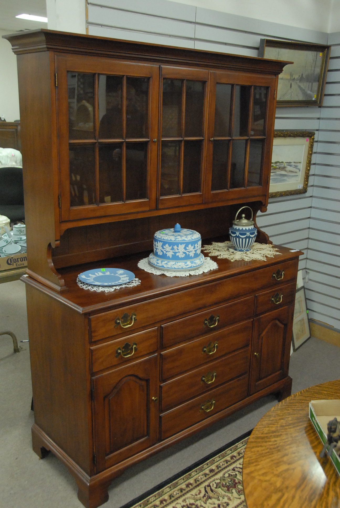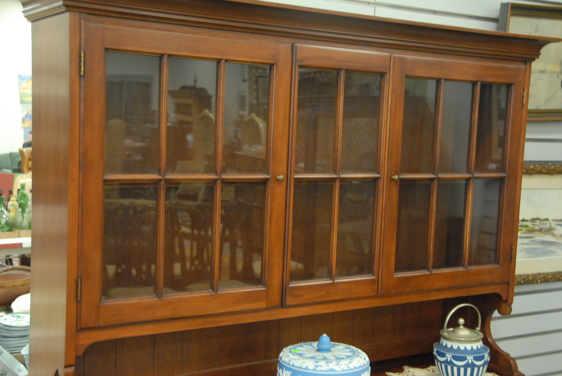 Henkel Harris wild black cherry hutch with three glass door top, lg. 54in. ht. 73in.