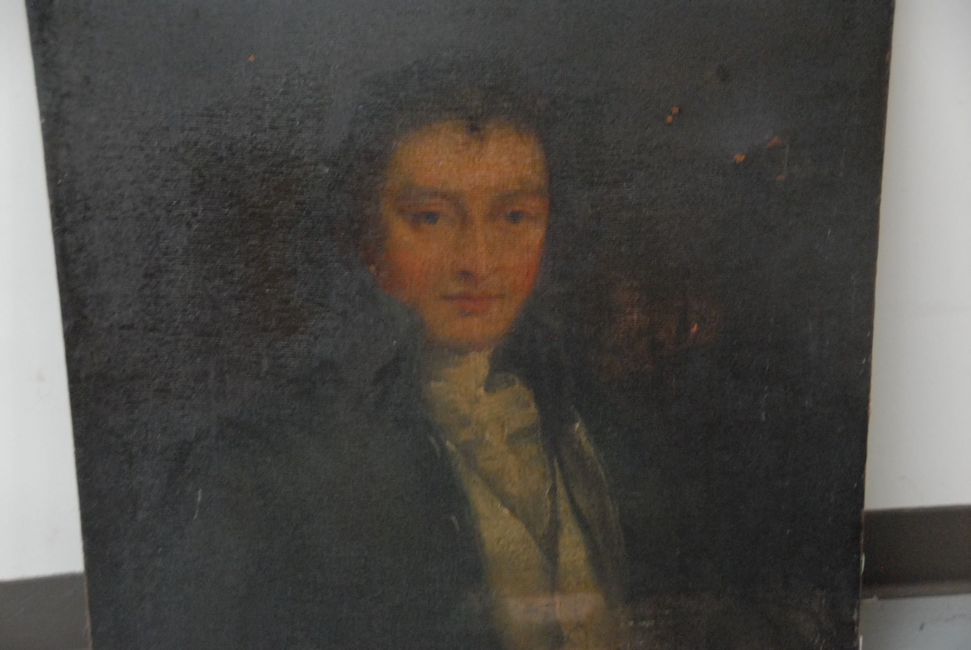 Oil on canvas portrait of gentleman, probably late 18th century, relined and unframed. 30 x 25