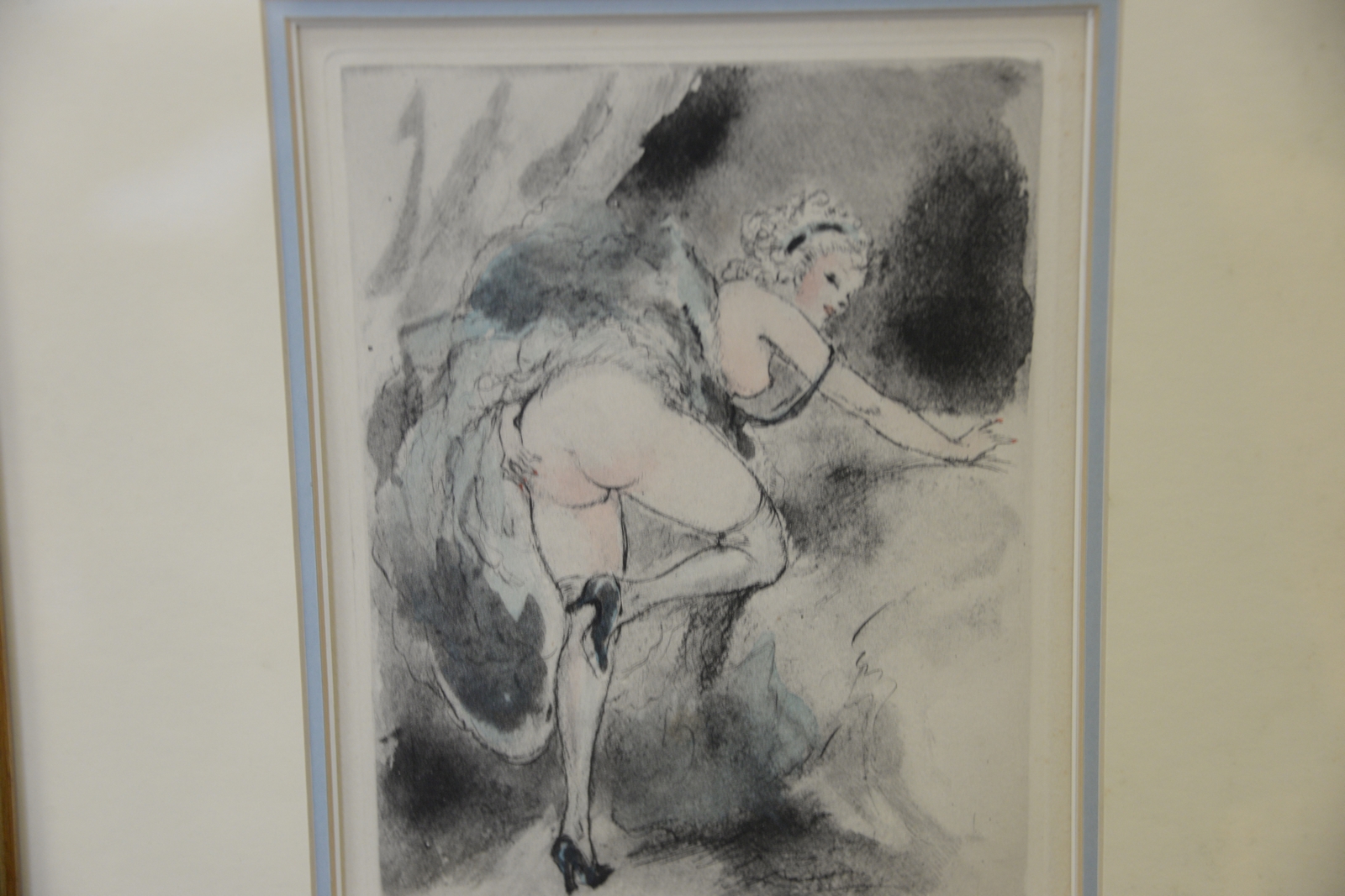 Lot 101: Pair of Louis Icart 1888-1950 etchings to include Roaming hand and Can Can Dancer, signed in pencil lower right, plate size 7 1/2…