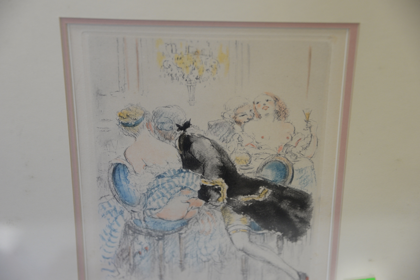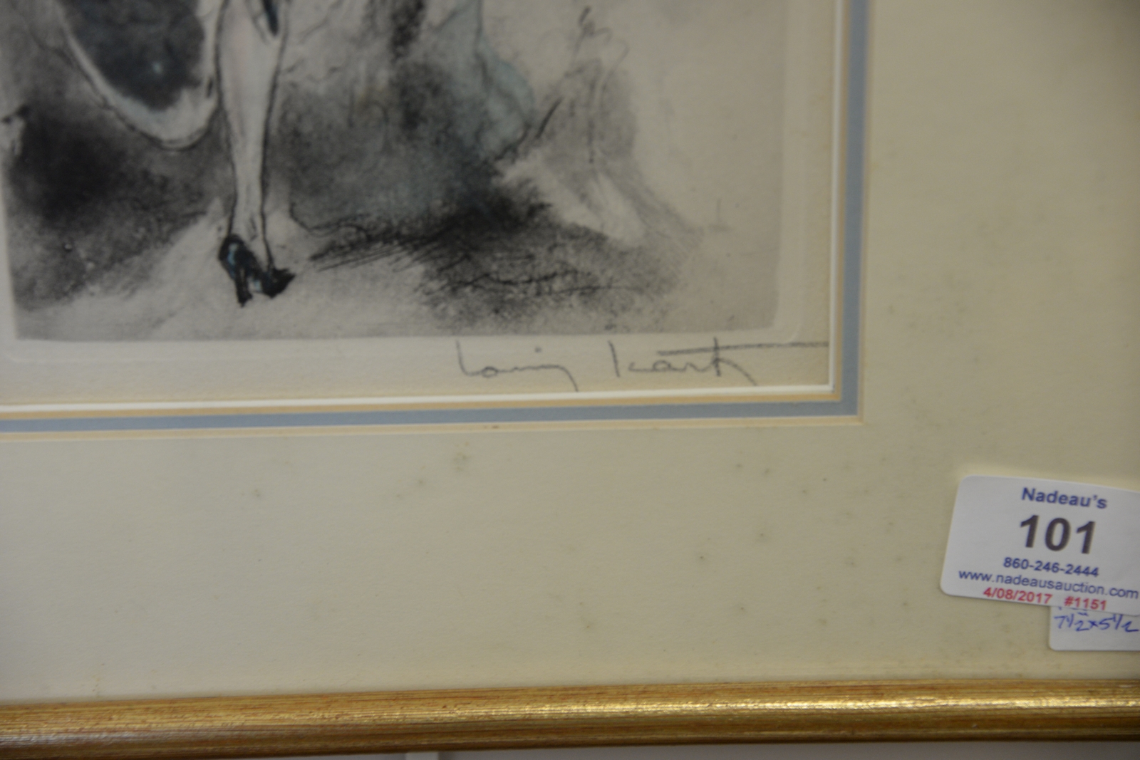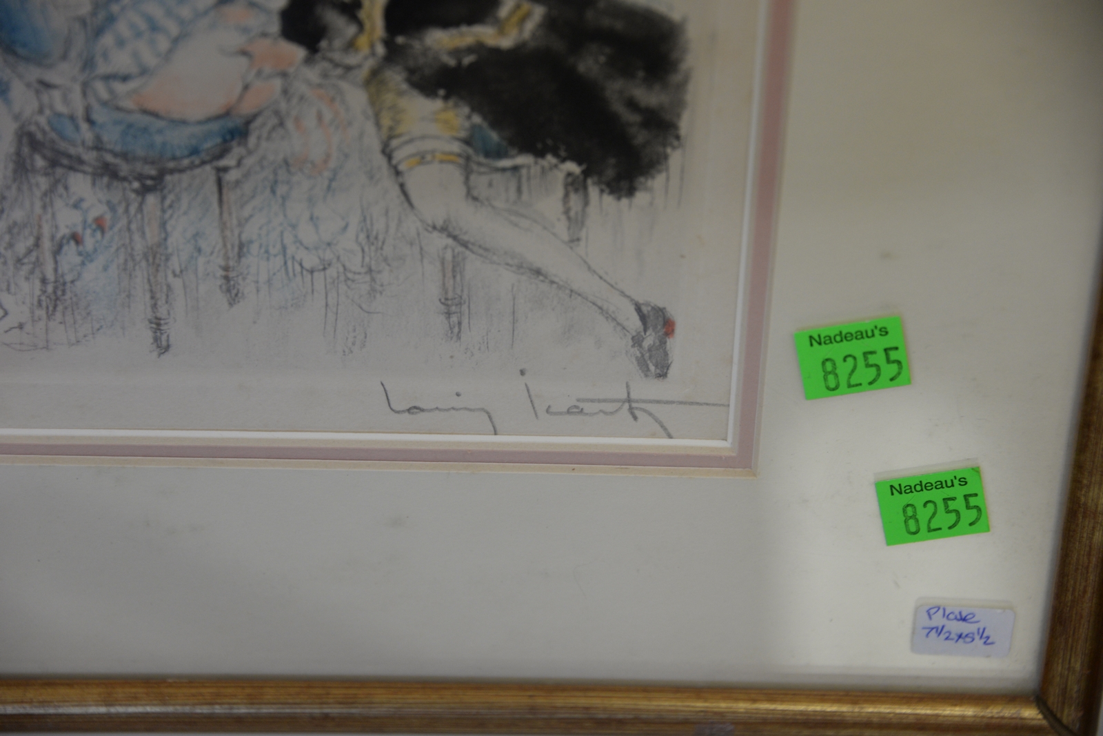 Pair of Louis Icart 1888-1950 etchings to include Roaming hand and Can Can Dancer, signed in pencil lower right, plate size 7 1/2 x 5 1/2